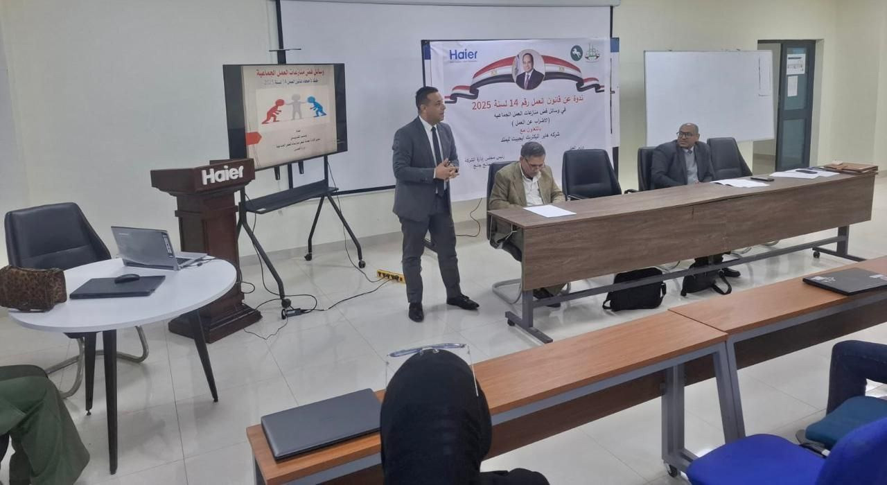 اشار مدير المديرية انه تم عقد ندوة موسعة لعدد (٢٥) شركة ومنشآة صناعية كبرى في نطاق مدينة العاشر من رمضان بعنوان (دور وسائل فض منازعات العمل الجماعية في التنبؤ بالأزمات العمالية وحلها) والتي نفذتها مديرية العمل بالشرقية بمدينة العاشر من رمضان والتي تأتي ضمن سلسلة الندوات التوعوية التي يتم تنفيذها بالتنسيق مع الإدارة العامة لفض منازعات العمل الجماعية و الإدارة الفنية : الإدارة المركزية للرعاية للتعريف بأحكام قانون العمل الجديد رقم (١٤) لسنة ٢٠٢٥ .