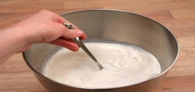 تشمل المكونات كيلو حليب، وكريمة سائلة عند استخدام حليب غير كامل الدسم، و2 ملعقة كبيرة من الخل الأبيض.
