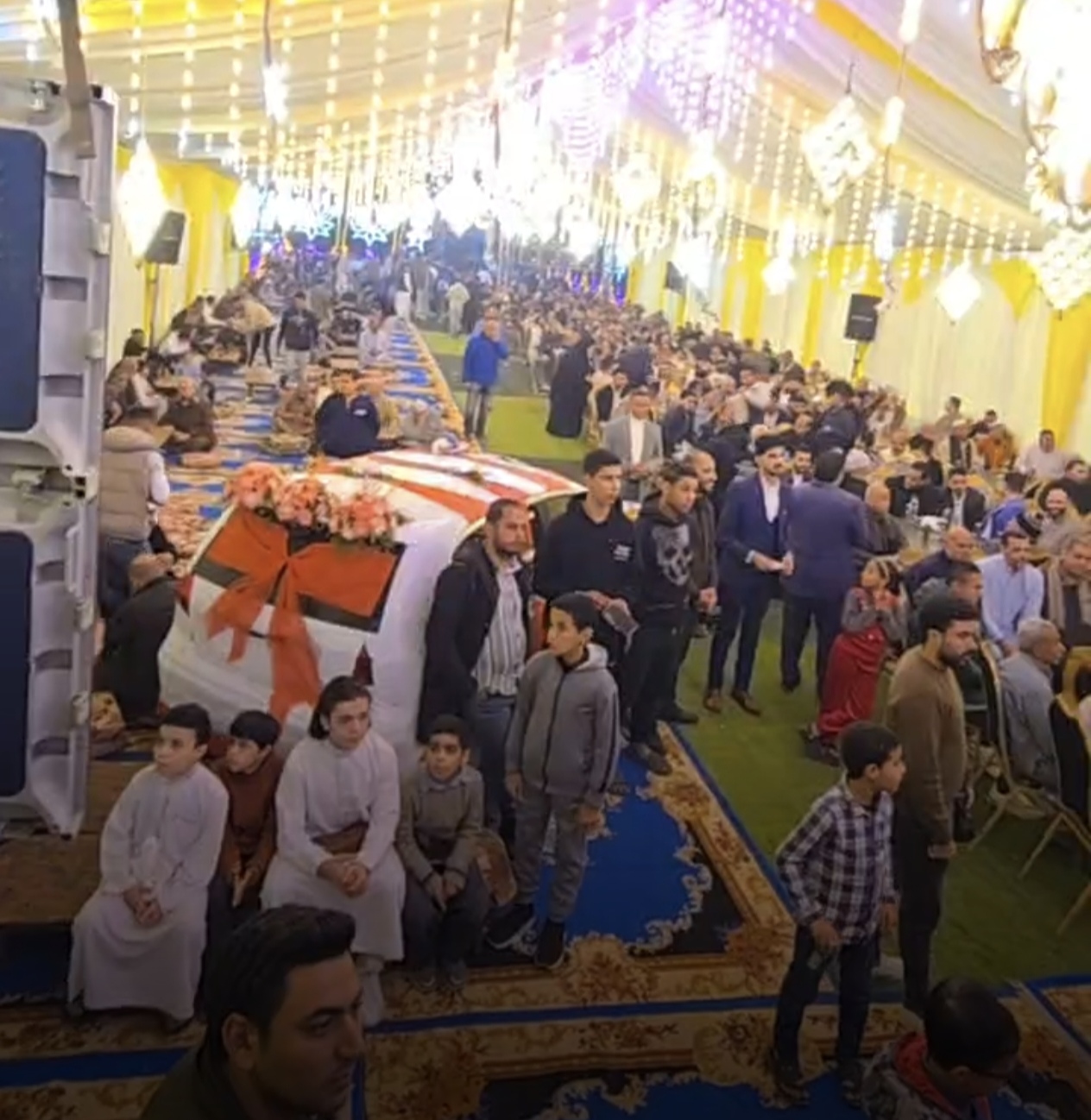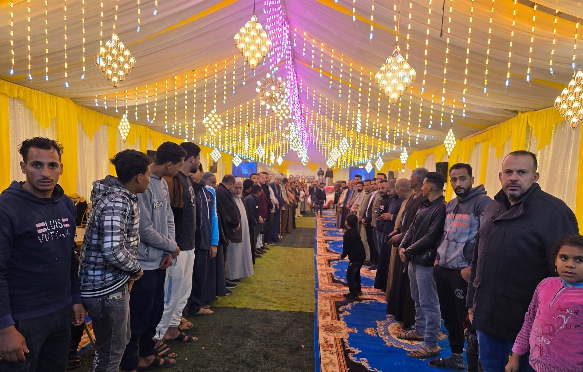واقام الاهالي احتفالية لتكريمه وممر شرفي في ليلة جمعت اهالي القرية وتصدرها الفرح وقراءه القران والابتهالات.