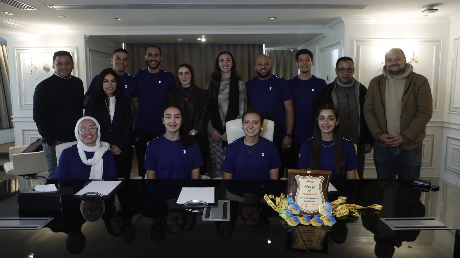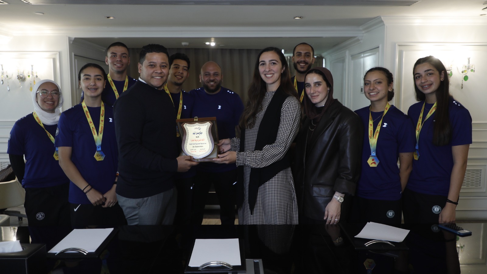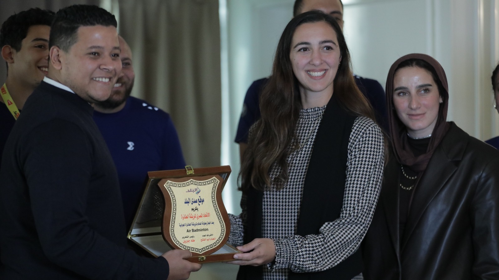 كما حضر التكريم الدكتورة هادية حسني رئيس الاتحاد المصري للريشة الطائرة، والكابتن منة الله الطناني عضو مجلس إدارة الاتحاد ورئيسة بعثة المنتخب في بطولة كأس العالم، إلى جانب الكابتن منير فايز المدير الفني لمنتخب مصر للريشة الهوائية، الذي قاد المنتخب لتحقيق هذا الإنجاز العالمي.
