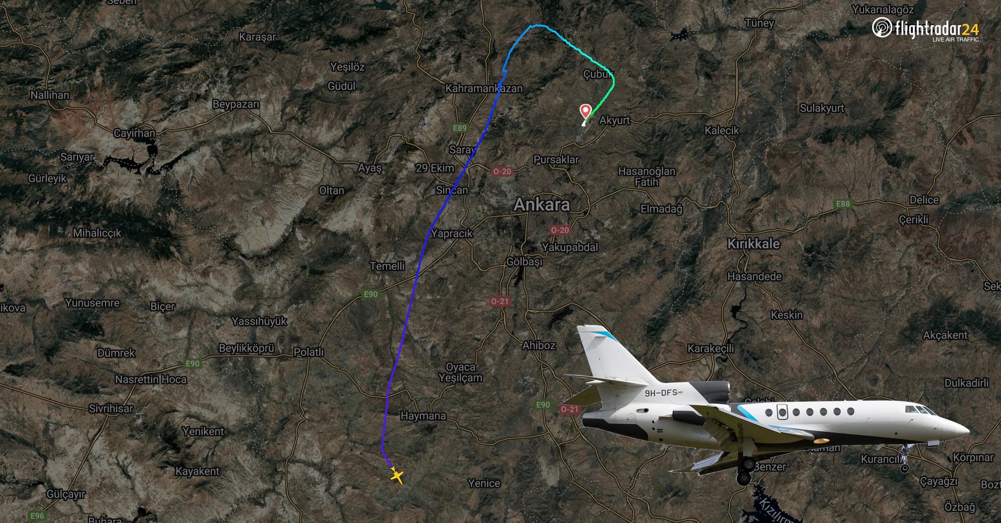 رصد موقع التتبع العالمي “فلايت رادار”، أخر إحداثيات أصدرتها طائرة القادة العسكريين الليبين، مشيرًا إلى أن طائرة Falcon 50 التابعة لشركة Harmony Jets Malta ، قد أقلعت من مطار أنقرة في تمام الساعة 17:17:24 بتوقيت UTC، وواصلت الصعود حتى وصلت إلى ارتفاع التحليق عند 32,475 قدمًا في الساعة 17:32.