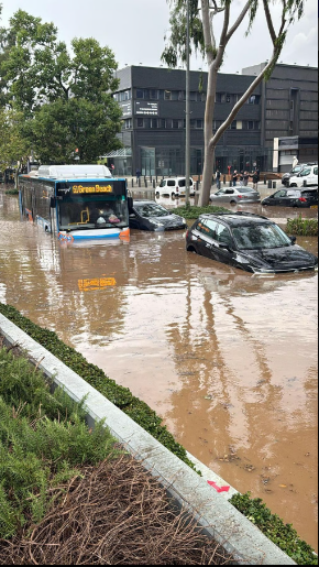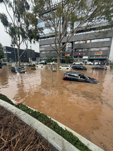 اجتاحت فيضانات مُفاجئة وسط إسرائيل بعد هطول أمطار غزيرة ظهر الثلاثاء بلغت حوالي 40 ملم في غضون ساعة تقريبًا وغمرت المياه شوارع بأكملها، ووصف شهود عيان مشاهد تشبه "الأنهار" التي تتدفق عبر المدينة.