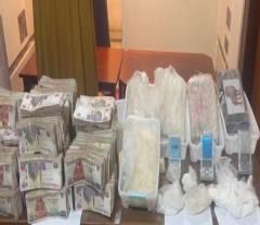 ▪ كما أمكن ضبط (عنصر جنائى خطر من متجرى المواد المخدرة - مقيم بدائرة مركز شرطة الخانكة) داخل المخزن وبحوزته (كمية من المواد المخدرة المتنوعة "هيروين – آيس – كوكايين – حشيش – أفيون" - مبالغ مالية عملات "أجنبية ومحلية").