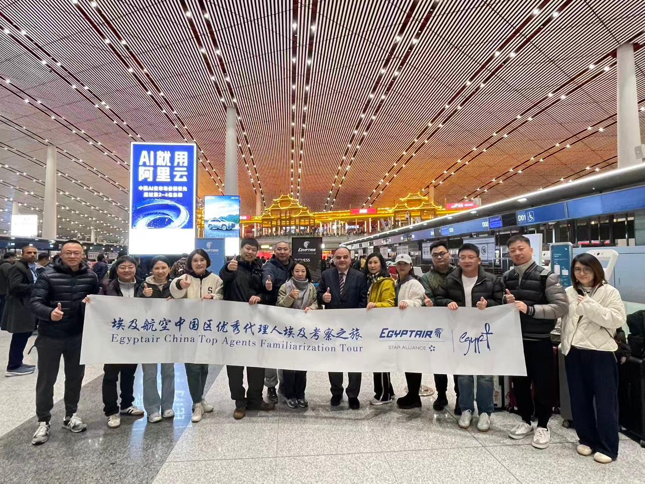 وفي إطار دعم الترويج للمقاصد السياحية المصرية، شاركت مصر للطيران في رعاية واحدة من أكبر الرحلات التعريفية للسوق السياحي المصري، حيث قامت برعاية ونقل 46 وكيل سياحي ومنظم رحلات صيني، بالتعاون مع وزارة السياحة والأثار المصرية، والهيئة العامة للتنشيط السياحي، والمتحف المصري الكبير، وشملت الرحلة زيارة أبرز المعالم الأثرية والمناطق السياحية في مصر، بما يُتوقع أن يسهم بشكل كبير في زيادة حجم السياحة الصينية الوافدة إلى مصر، خاصة على متن رحلات مصر للطيران، الناقل الوطني لجمهورية مصر العربية.