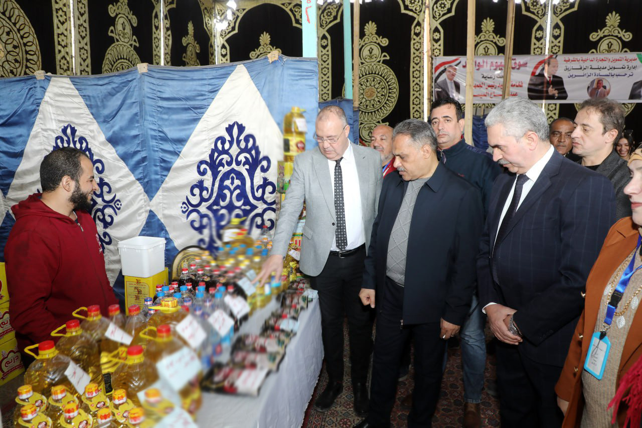 تفقد المحافظ ، ومرافقوه أجنحة المعرض والمُقام علي مساحة 325م ومكون من 13 باكية بالإضافة إلى سيارات المنافذ المتنقله لتقديم مختلف السلع من المواد الغذائية والسكر بسعر 25 جنيه ، وكذلك الألبان وعسل النحل والحلويات واللحوم والخضروات والفواكه والبقوليات والزيوت بتخفيضات تتراوح ما بين 10: 30 % لإتاحة الفرصة لأبناء مدينة الزقازيق والقرى التابعة لها لشراء إحتياجاتهم من السلع والمواد الغذائية بأسعار تنافسية تلبي إحتياجاتهم.
