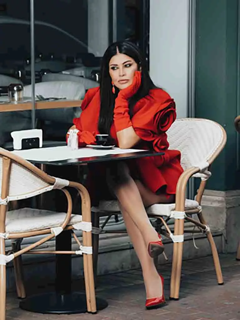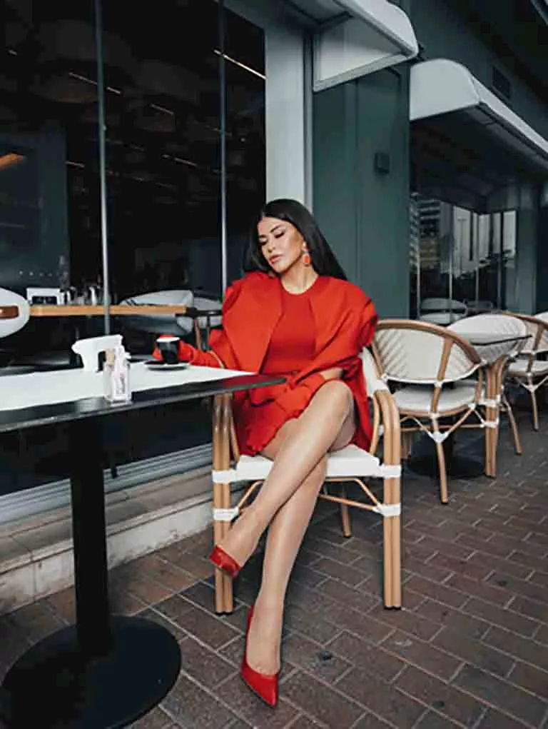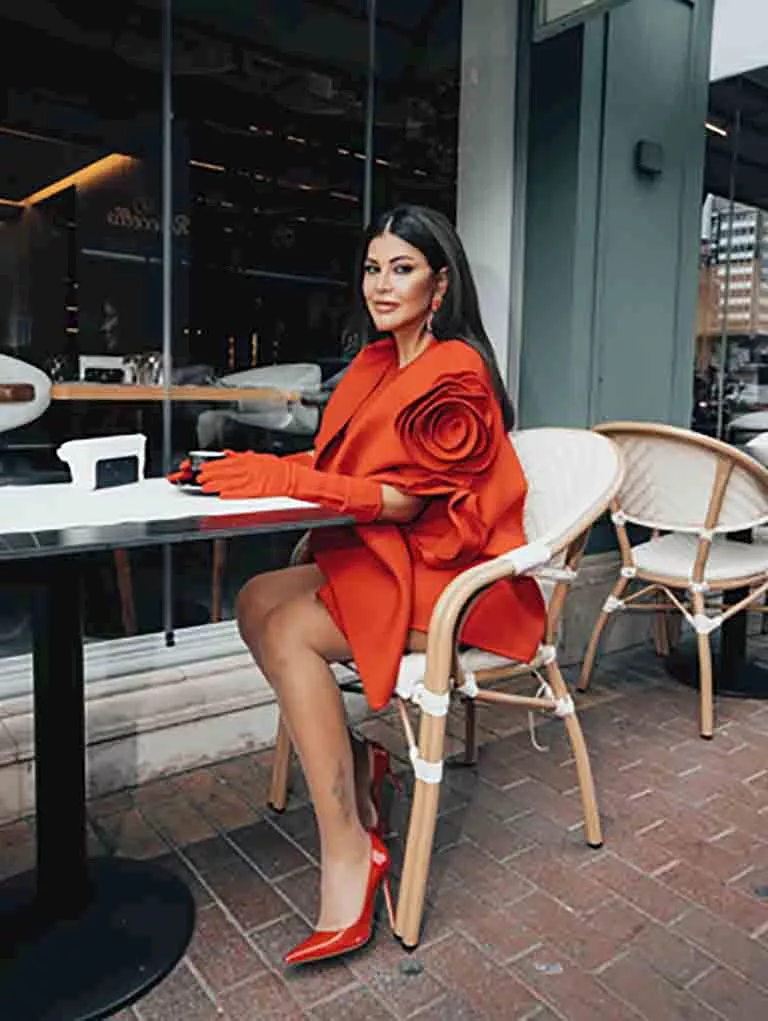وظهرت بإطلالة جريئة إذ ارتدت خلالها فستانًا قصيرًا باللون الأحمر ووضعت مجوهرات تتناسب مع إطلالتها ،كما اختارت مكياجا ثقيل يبرز جمال ملامحها.