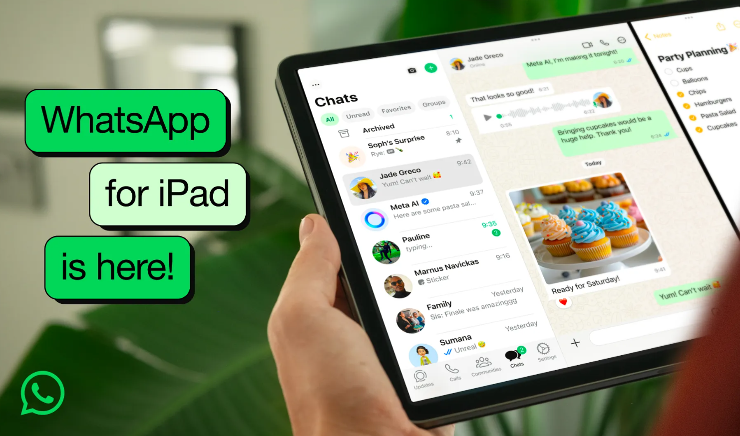 في 27 مايو 2025، أعلن واتساب رسميا عن إتاحة تطبيقه لأجهزة آيباد، مستجيبا لأحد أكثر طلبات المستخدمين شيوعا، يوفر التطبيق تجربة شاشة كبيرة مع دعم المكالمات الجماعية حتى 32 شخصا، ومشاركة الشاشة، وتعدد المهام، مع الحفاظ على التشفير التام والمزامنة عبر الأجهزة.