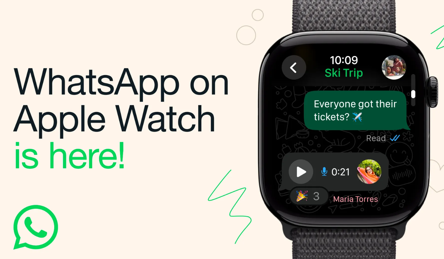 في 4 نوفمبر 2025، أطلق واتساب تطبيقه الرسمي الجديد لساعة آبل، لتمكين المستخدمين من متابعة محادثاتهم مباشرة من المعصم دون الحاجة إلى الهاتف، حيث يدعم التطبيق قراءة الرسائل كاملة، إرسال الرسائل الصوتية، التفاعل بالرموز التعبيرية، عرض الوسائط، والاطلاع على سجل الدردشة مع الحفاظ على التشفير التام.