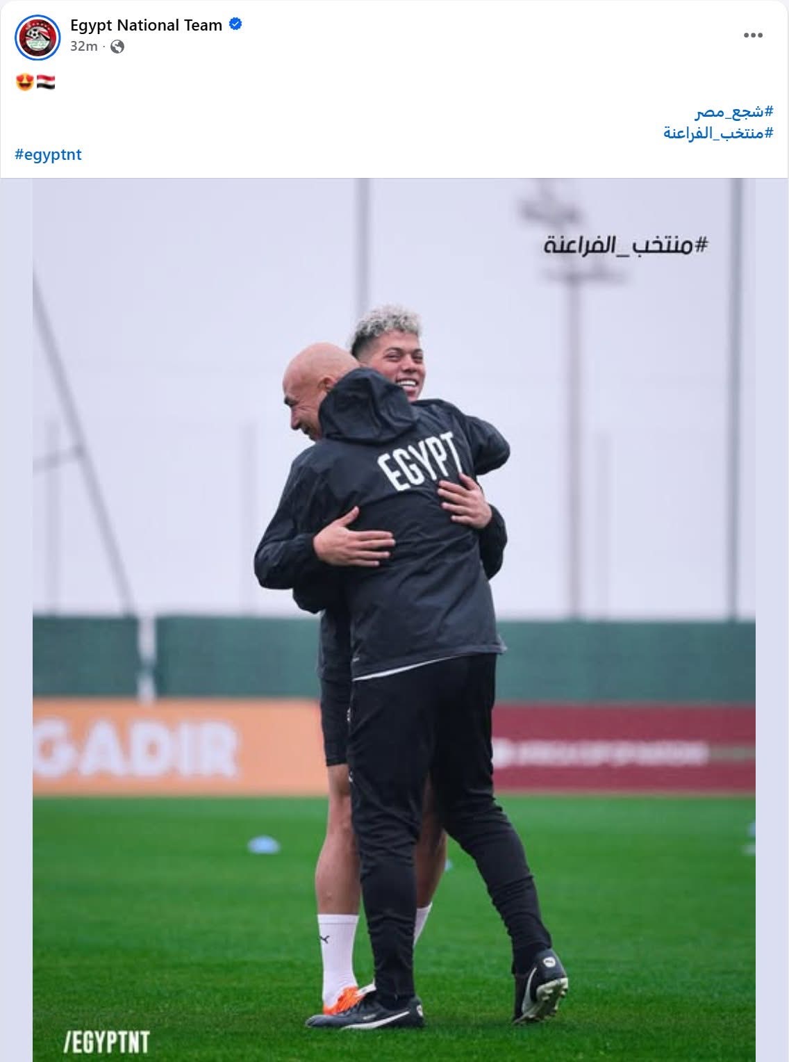 شارك الحساب الرسمي لمنتخب مصر صورة لنجم الأهلي إمام عاشور مع المدير الفني للمنتخب الوطني حسام حسن عبر موقع التواصل الاجتماعي فيسبوك .