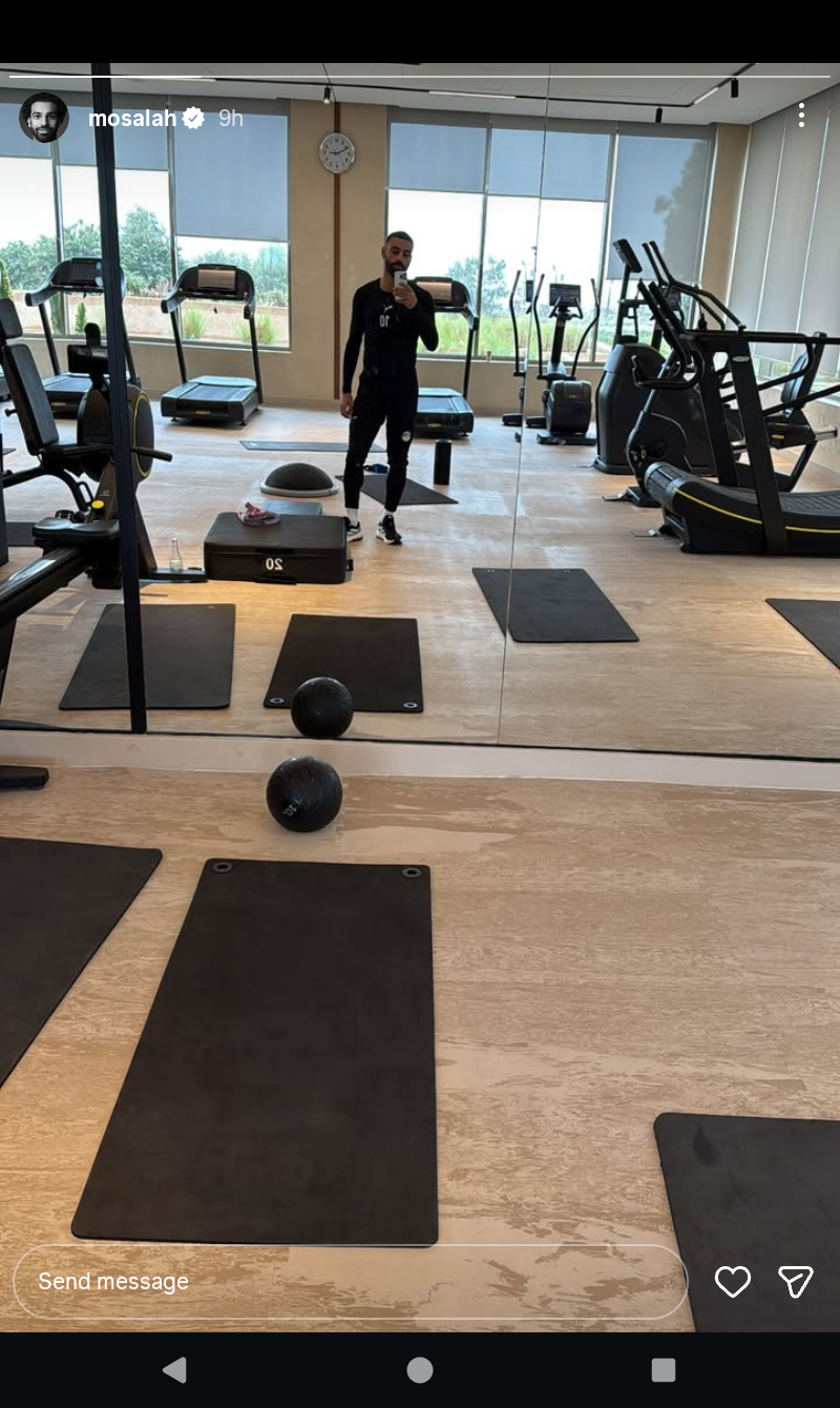 وظهر صلاح في الصورة من داخل صالة الألعاب الرياضية من مرانه اليومي .