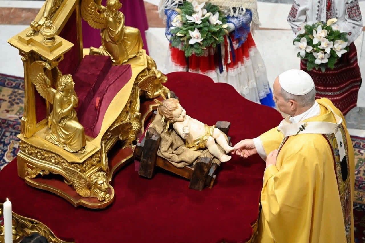 وشدد بابا الكنيسة الكاثوليكية على أن علامة الخلاص التي أعطاها الله لعالم مظلم لم تكن قوة، أو سلطانًا، بل طفلًا ملفوفًا بأقمطة، مضجعًا في مذود، معتبرًا أن عظمة الله تتجلّى في ضعف وليد، وأن قداسة الروح تشرق في جسد بشري صغير محتاج إلى الرعاية والدفء، مثل جميع البشر.