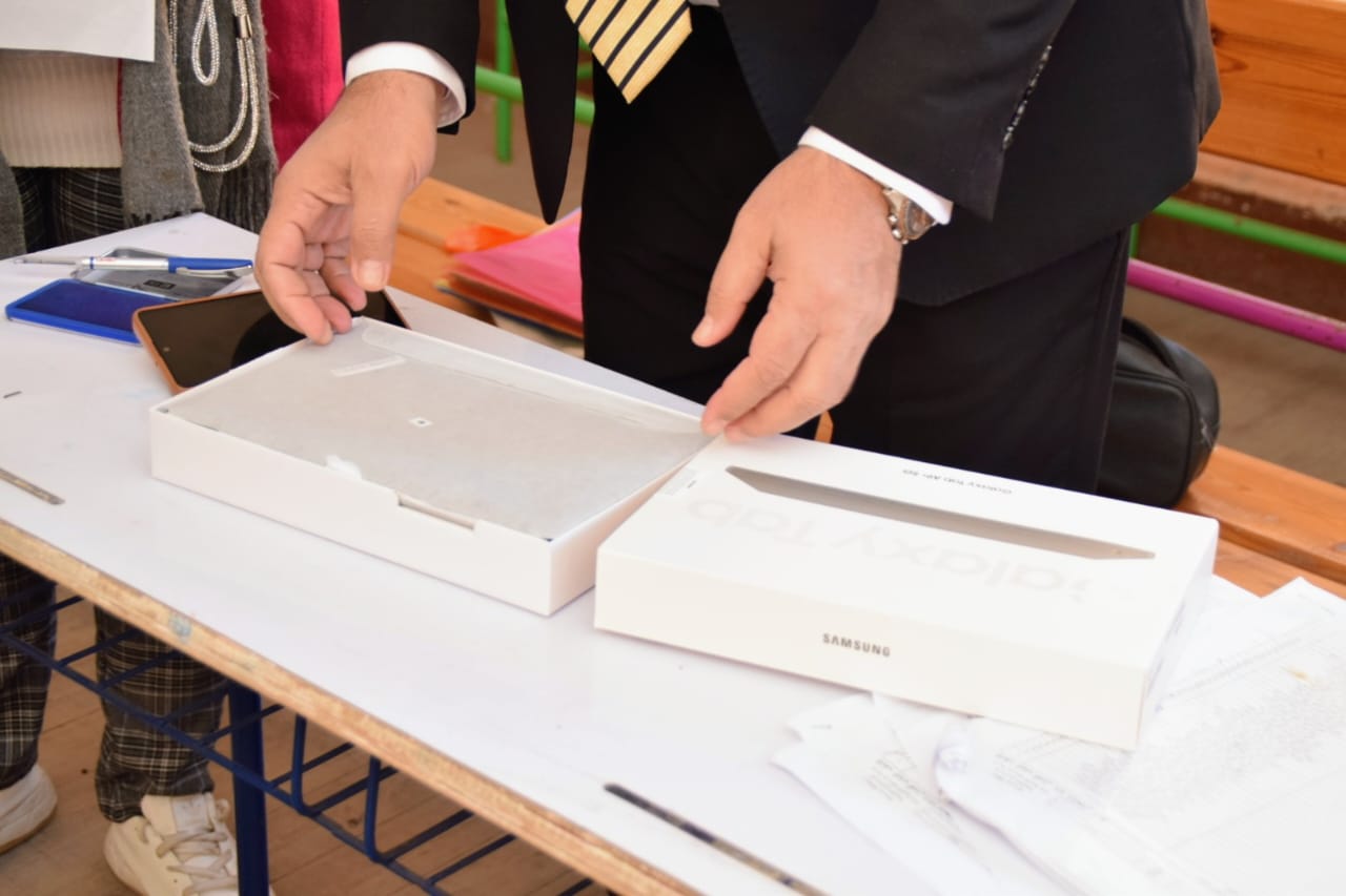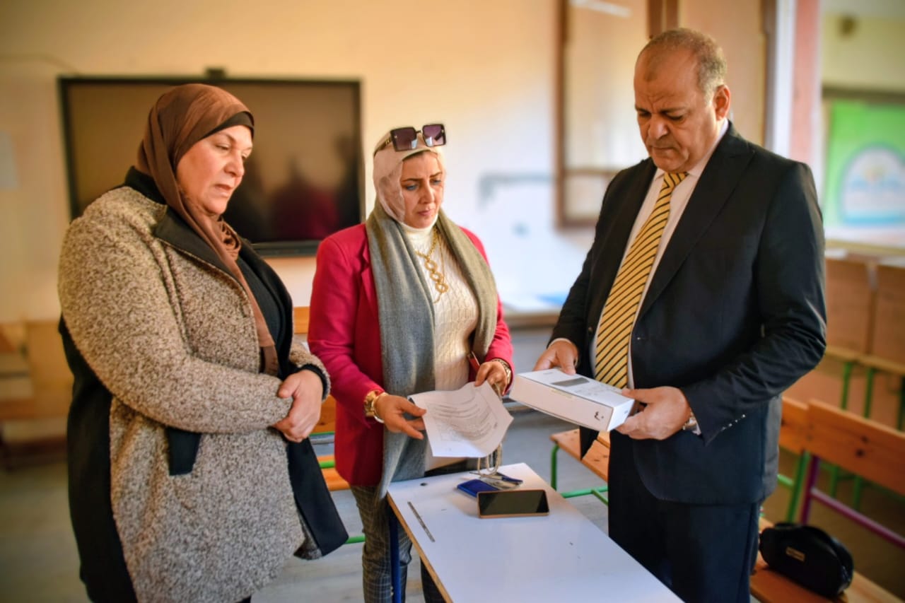 تابع طاهر الغرباوي مدير مديرية التربية والتعليم بمحافظة بورسعيد اليوم عملية تسليم أجهزة التابلت المدرسية لطالبات الصف الأول الثانوي بمدرسة بورسعيد الثانوية بنات فور وصوله إلى المدرسة وذلك بحضور الأستاذة ستوته عبد الله مدير إدارة التعليم الثانوي المركزية والأستاذة رضا الجبالي مدير المدرسة.