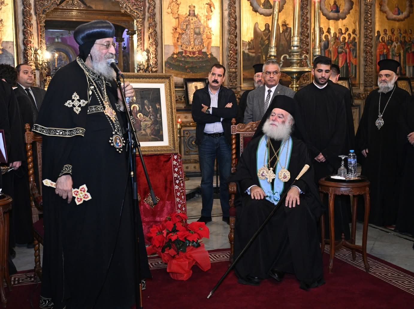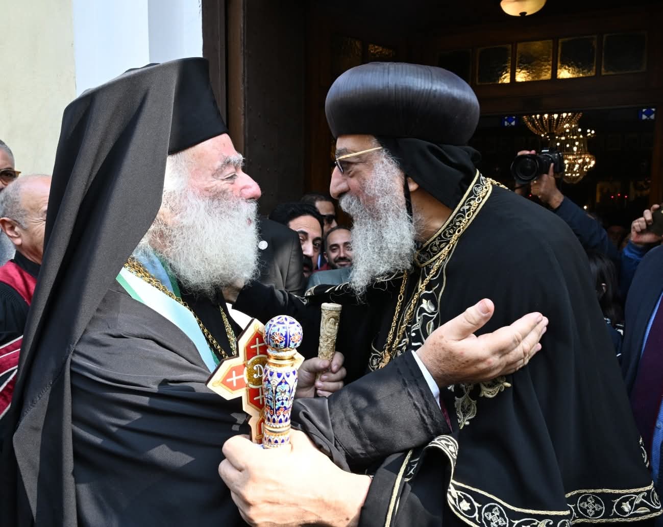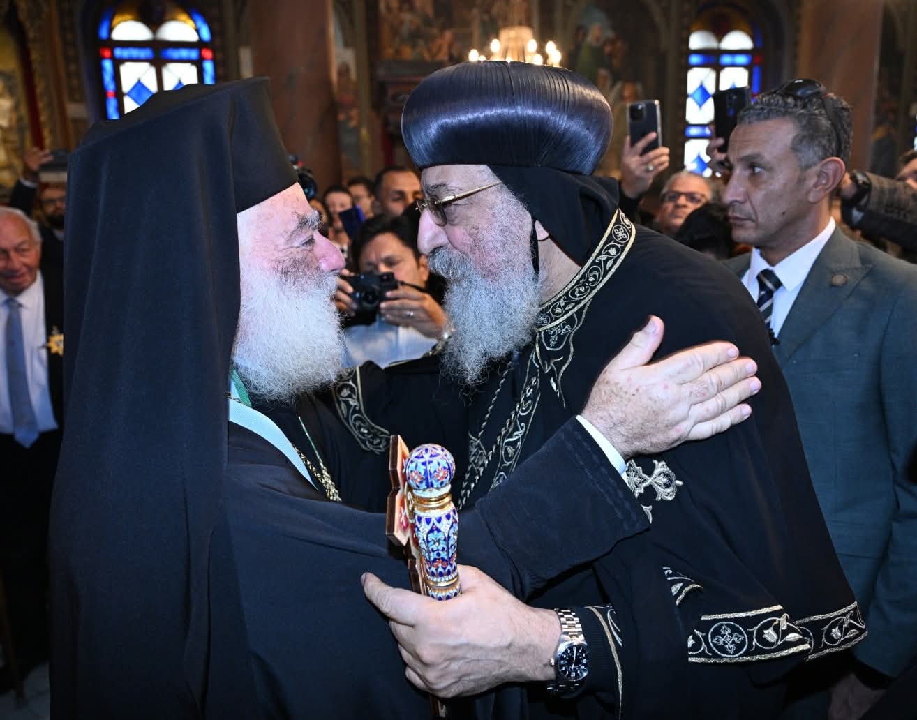 وزار قداسة البابا بعد ظهر اليوم، مقر بطريركية الروم الأرثوذكس، بمنطقة الحمزاوي بالقاهرة، ورافقه وفد كنسي، حيث هنأ غبطة البطريرك والمطارنة، بهذه المناسبة.