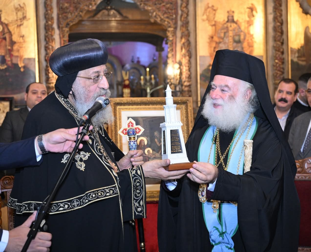 وقدم قداسة البطريرك لقداسة البابا هدية عبارة عن أيقونة لآباء مجمع نيقية بينما أهداه قداسة البابا نموذج لمنارة الإسكندرية مدون عليها نص قانون الإيمان النيقاوي مكتوب فيه كل عبارة من نص القانون بإحدى اللغات الحية.