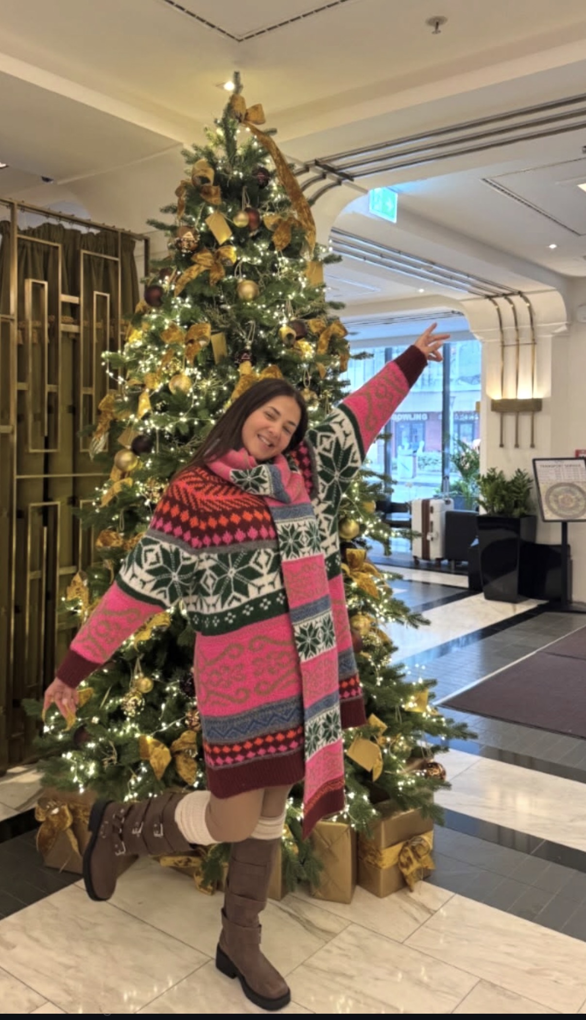 تألقت دنيا سمير غانم في الصور بإطلالة شتوية، حيث ارتدت بلوفر طويل اتسم بالألوان المبهجة وذا أكمام طويلة.