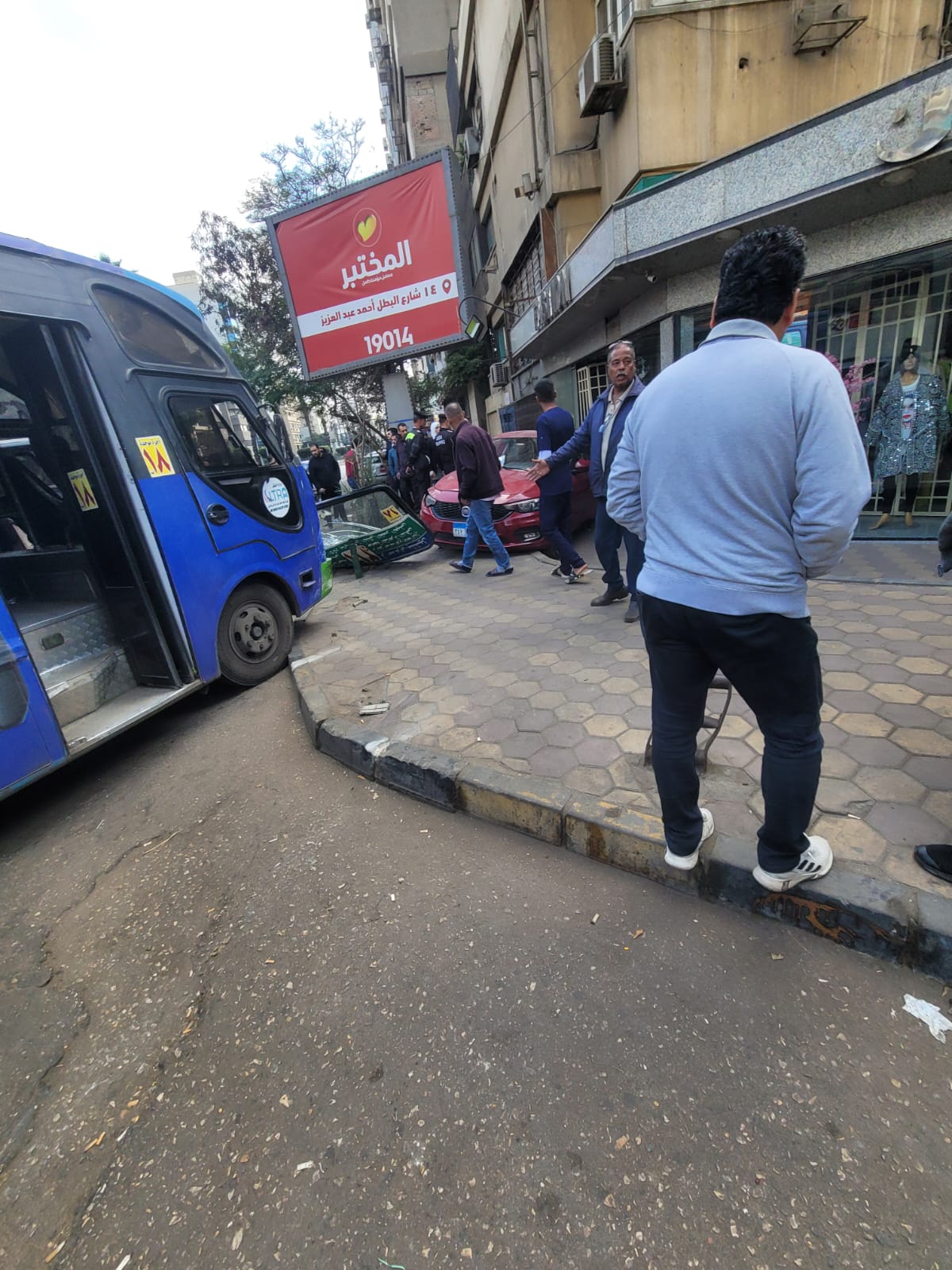 وقع الحادث على مدخل شارع عبد المنعم رياض في شارع البطل أحمد عبد العزيز حيث اصطدم ميني باص بسيارة ملاكي، أبلغ المارة ومجند المرور المتمركز في الإشارة بمسرح الحادث شرطة النجدة.