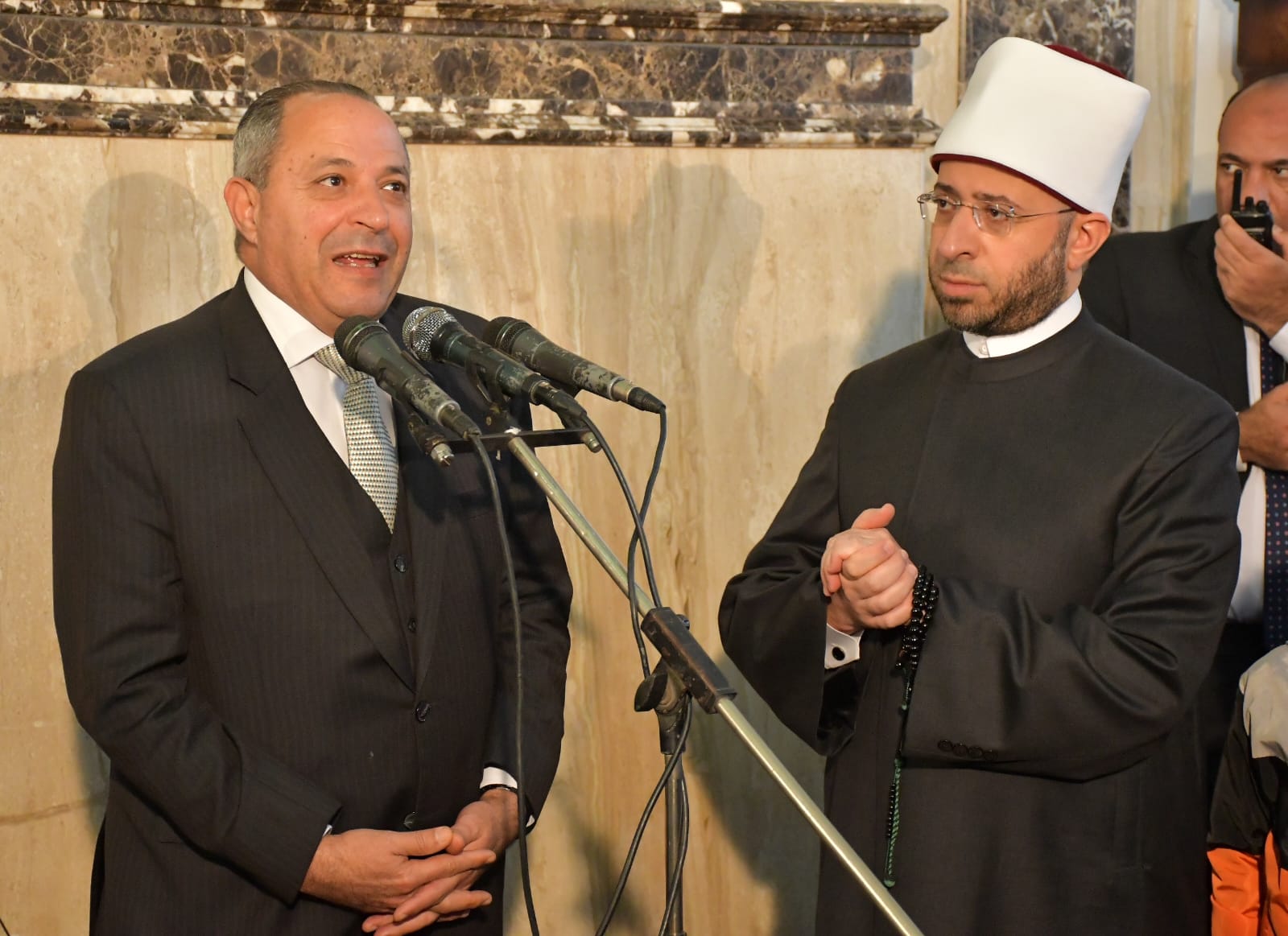 وزيرا " الأوقاف و التعليم العالي" ومفتي الجمهورية والمحافظين السابقين وقائد الجيش الثاني الميداني و نائب رئيس هيئة قناة السويس يؤدون صلاة الجمعة بالمسجد العباسي