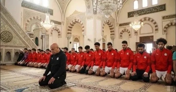 قال محمد مراد عبر الصفحة الرسمية بموقع التواصل الإجتماعي فيسبوك: الصورة التي ظهر خلالها لاعبو منتخب مصر يصلون وهم يرتدون الشورت فيك Ai ولا تمت بالحقيقة بأي صلة.