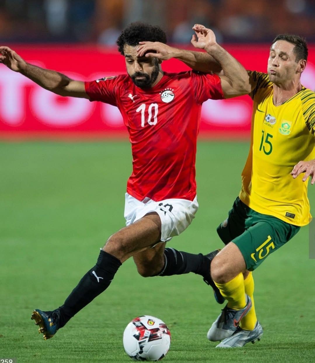 سجل محمد صلاح هدف منتخب مصر في الدقيقة 45 من عمر اللقاء من ركلة جزاء، بعد أن احتسبها الحكم لصالح محمد صلاح بعد تدخل مدافع جنوب إفريقيا بذراعه عليه في وجهه، لتعلن عن تقدم منتخب مصر بالهدف الأول.