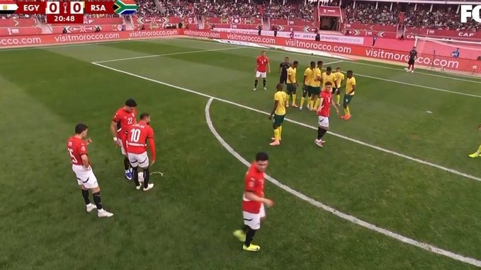 وفي الدقيقة 19 نفذ عمر مرموش ركلة حرة على جانب منطقة الجزاء ولكن مرت من أمام 3 لاعبين من منتخب مصر أمام المرمى.