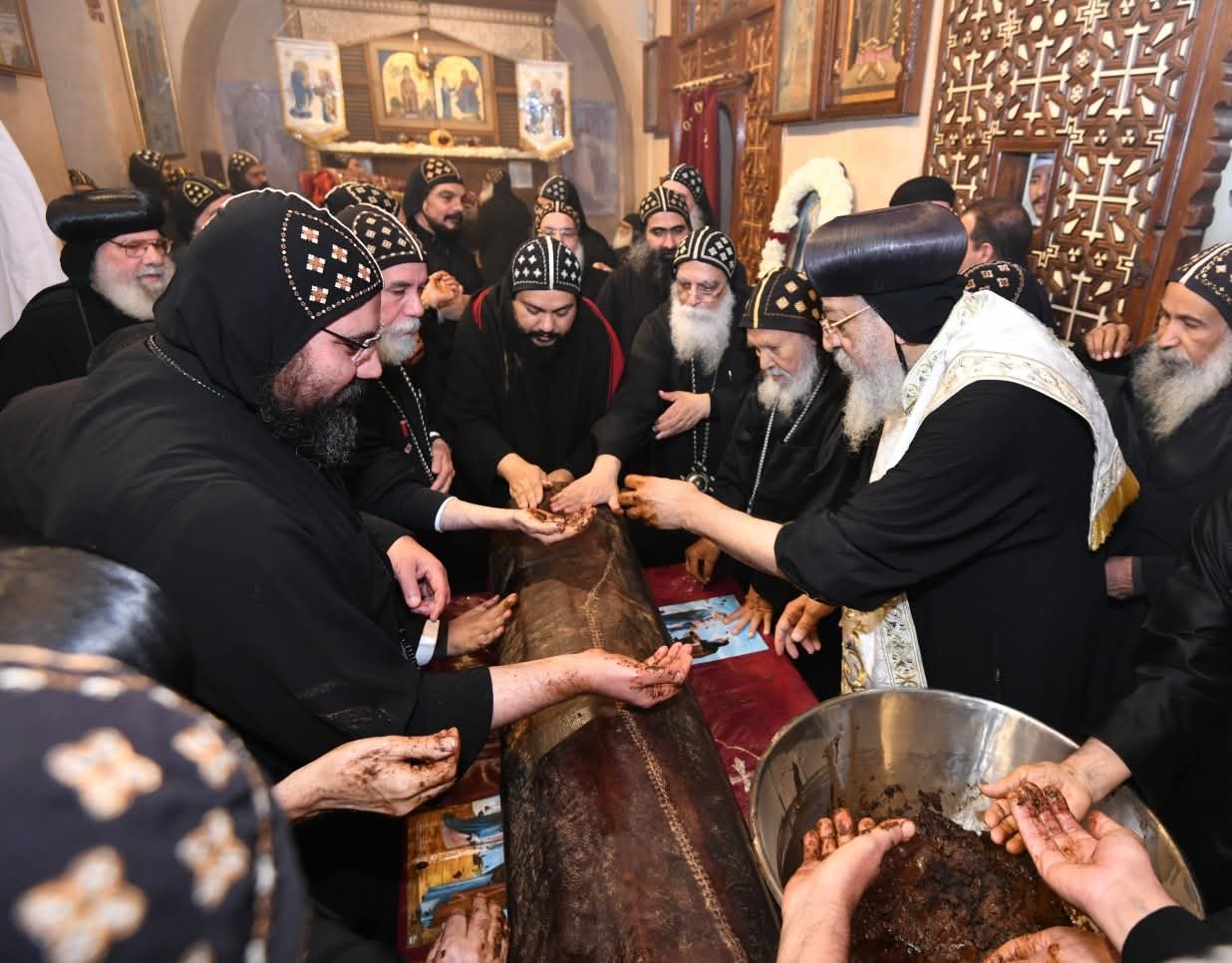 شارك في تطييب الرفات إلى جانب نيافة الأنبا متاؤس أسقف ورئيس الدير، عدد من الآباء الأساقفة.