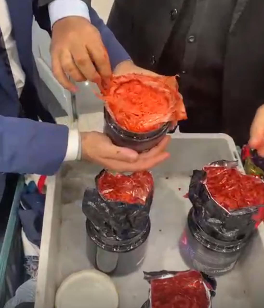 تم تكليف توماس فريد مامور الجمرك بتفتيش الراكب يدويا مما اسفر عن ضبط أربعة عبوات(برطمانات) بهم نفس الماده مع الراكب الاول وبسؤال الراكبين عن ما هو موجود بالعبوات قالا انها معسل وبفحص تليفون الراكب وتتبع باقي ركاب الرحلة تم ضبط راكبين اخرين بحوزة كل منهما عبوه (برطمان) بهما نفس المادة والتي افاد رجال ادارة مكافحة المخدرات بمطار القاهرة برئاسة العميد باسم حجاج بانها مادة بودر الحشيش المخدر .