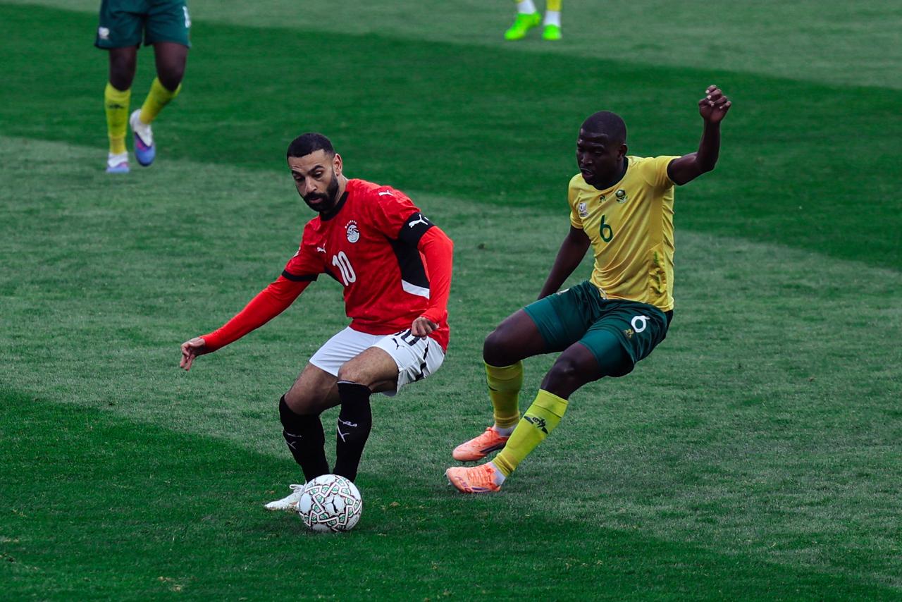 وسجل محمد صلاح هدف منتخب مصر في الدقيقة 45 من عمر اللقاء من ركلة جزاء، بعد أن احتسبها الحكم لصالح محمد صلاح بعد تدخل مدافع جنوب إفريقيا بذراعه عليه في وجهه، لتعلن عن تقدم منتخب مصر بالهدف الأول.