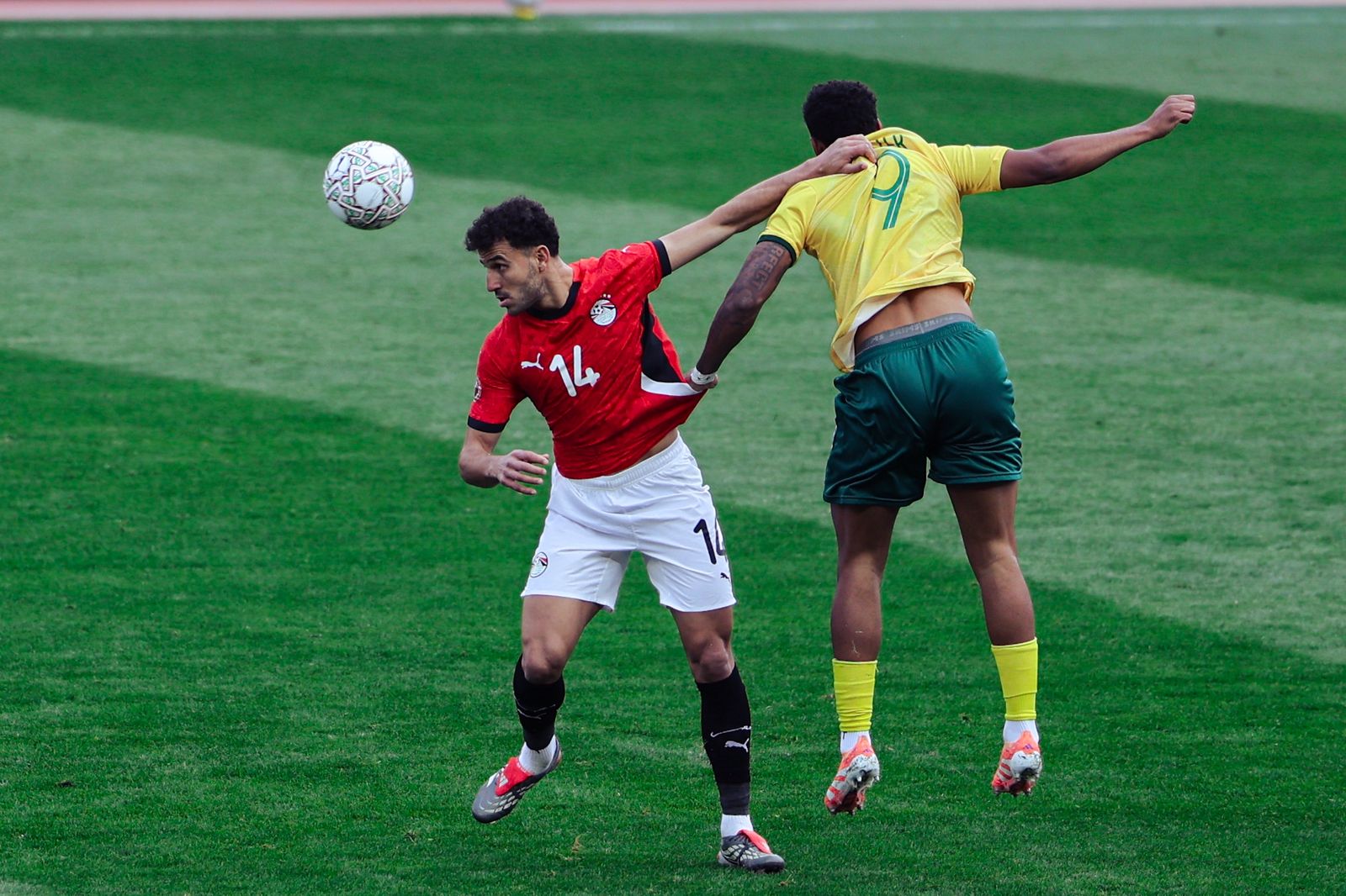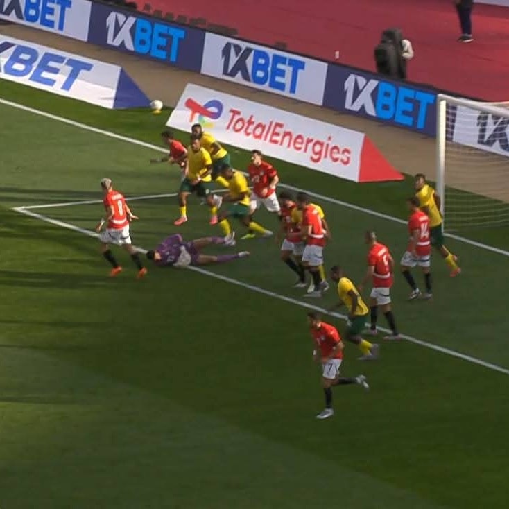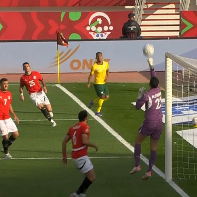 وهدد لايلي فوستر لاعب منتخب جنوب أفريقيا مرمى محمد الشناوى حارس منتخب الفراعنة، بعدما استحوذ على الكرة وسددها وتصدى لها الحارس فى الدقيقة 29 من عمر المباراة.