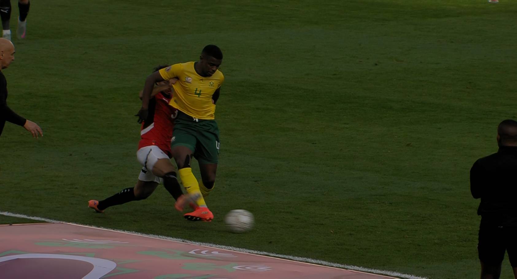 وفي الدقيقة 45+2 تعرض محمد هاني ظهير أيمن منتخب مصر للطرد بعد حصوله على الكارت الأصفر الثاني في اللقاء ليحصل على الكارت الأحمر بعد تدخله على لاعب منتخب جنوب إفريقيا.