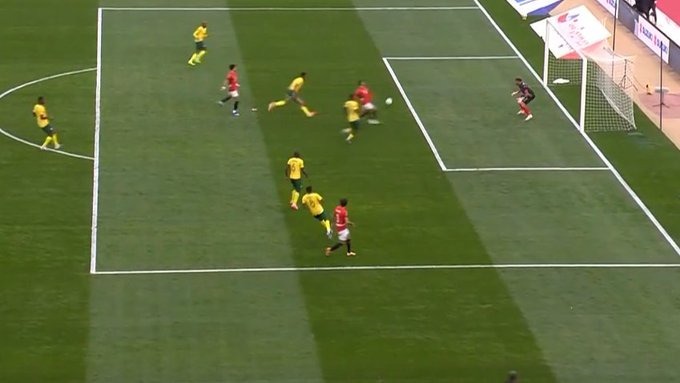 في الدقيقة 11 مرر محمد هاني كرة عرضية أرضية لمحمد صلاح ولكن لم يستطع اللحاق بها في أخطر فرص اللقاء لتمر بسلام على منتخب جنوب إفريقيا.