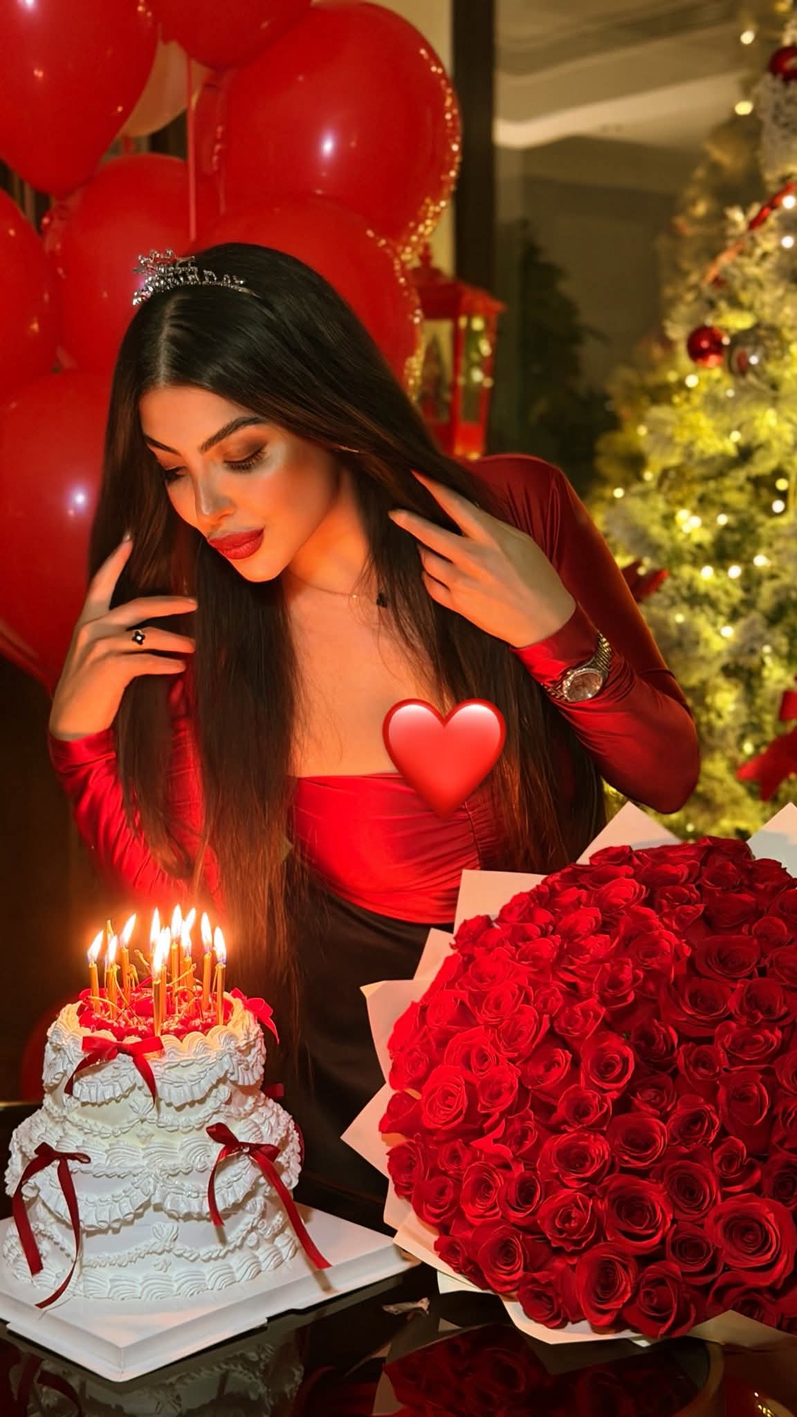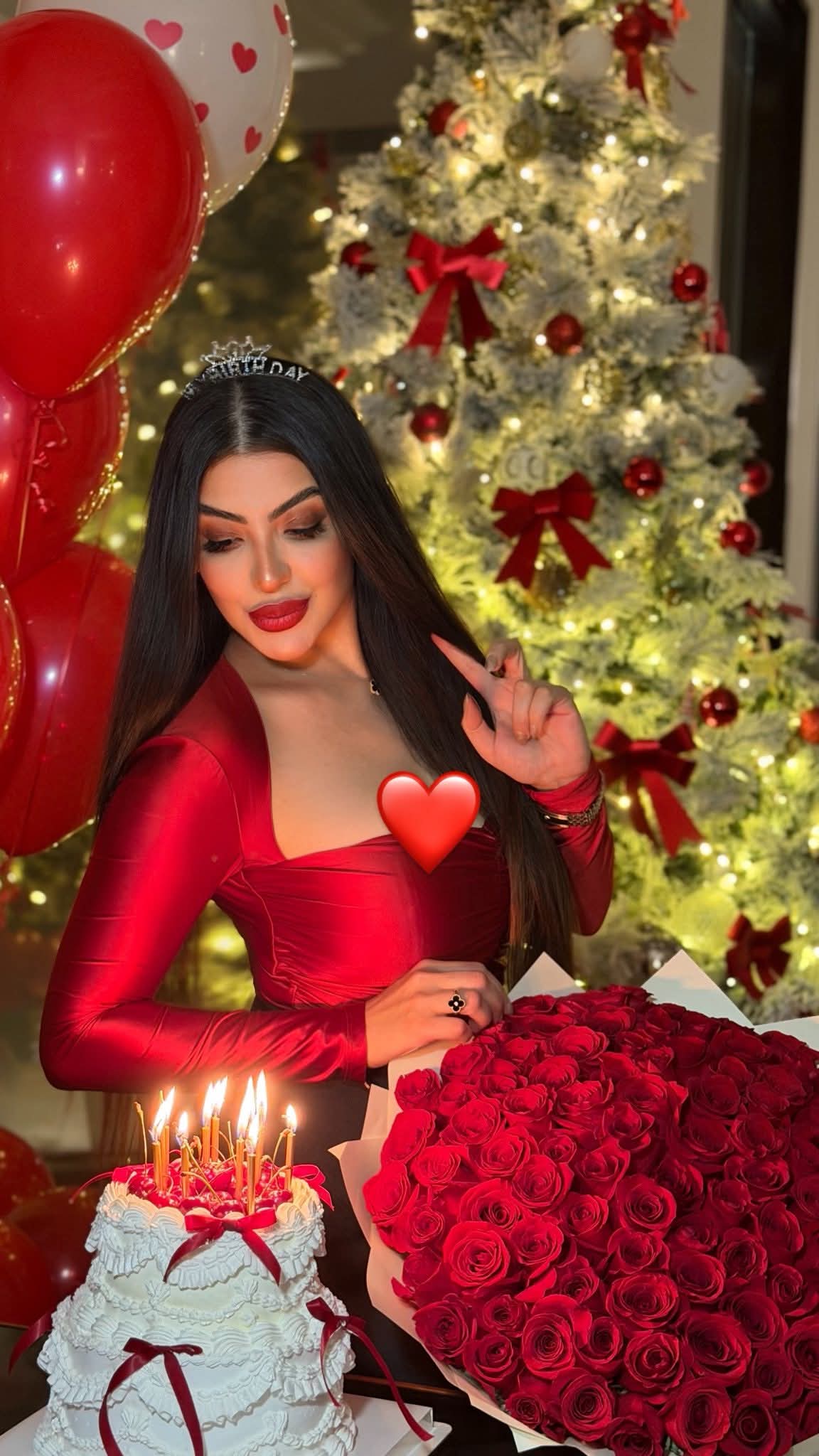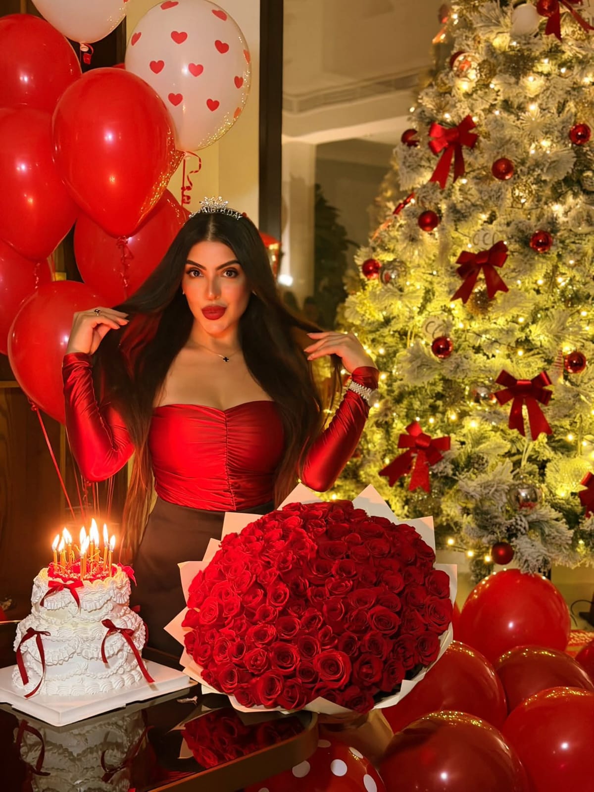 وظهرت دعاء في الصور وسط شجرة الكريسماس المزينة، محاطة بالورود والبالونات، في مشهد عكس أجواء الاحتفال وروح المناسبة.