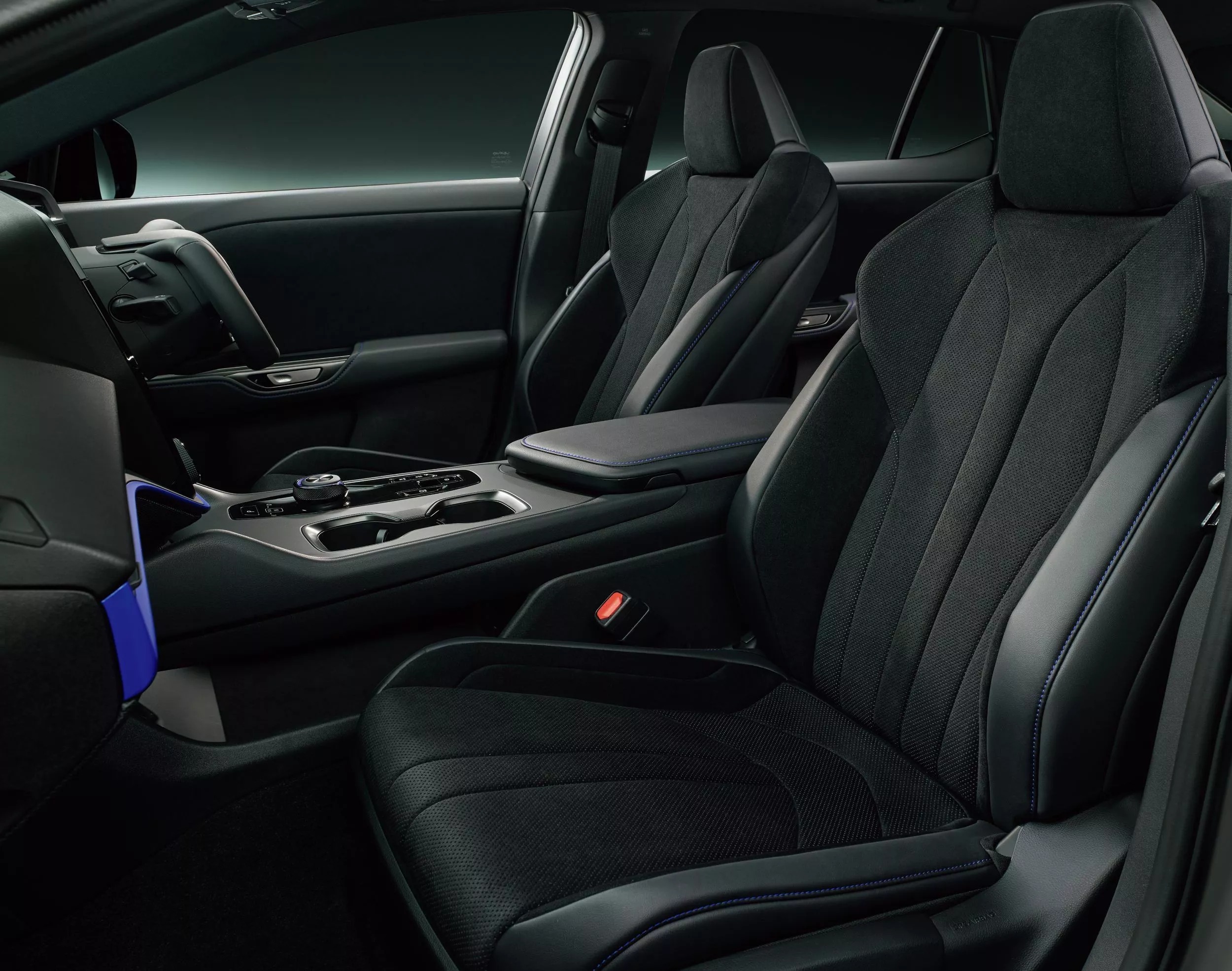 وتميّزت السيارة بجنوط قياس 21 بوصة باللون الأسود المطفي، مع نظام مكابح مطور يضم أقراصًا أكبر بقياس 20 بوصة وكاليبرات أمامية بعدد 6 مكابس، كما جرى خفض نظام التعليق بمقدار 20 ملم مقارنة بنسخة RZ 550e F Sport، لتحسين الثبات والتحكم، إلى جانب واجهة أمامية حادة التصميم ومصابيح تمنح السيارة حضورًا قويًا على الطريق.