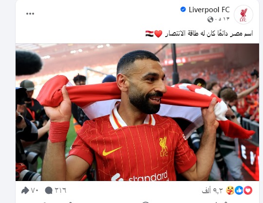 أشادت الصفحة الرسمية لـ نادي ليفربول بـ مباراة منتخب مصر أمام منتخب جنوب أفريقيا في بطولة كأس أمم إفريقيا.