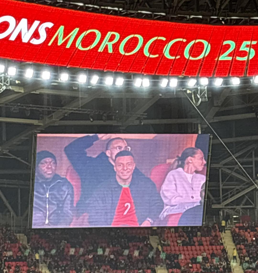 حرص الفرنسي كيليان مبابي لاعب ريال مدريد، على الحضور في ملعب مولاي عبد الله الذي يستضيف مباراة المغرب ضد مالي ضمن مباريات الجولة الثانية لدور المجموعات في بطولة أمم افريقيا، لمساندة زميله السابق في باريس سان جيرمان، أشرف حكيمي قائد المغرب.