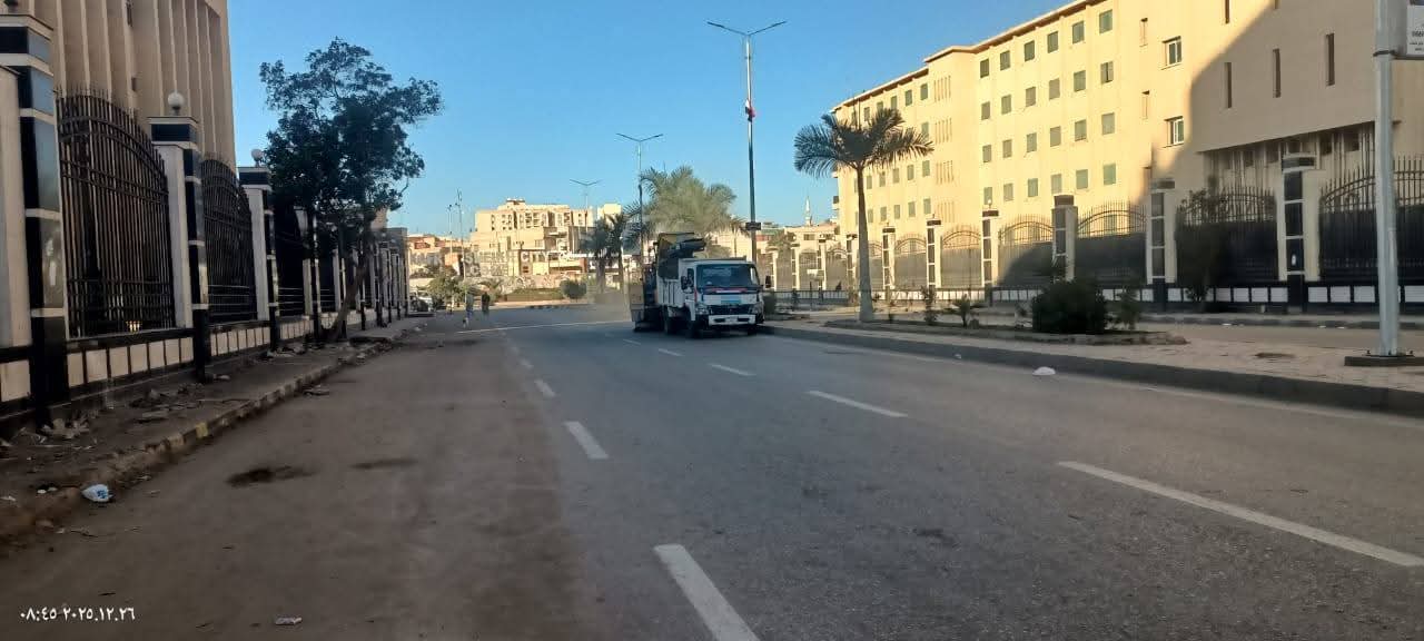كما تابع أعمال النظافة الدورية للتأكد من رفع تراكمات القمامة بالشوارع والحفاظ على مستوى النظافة بالمدينة.