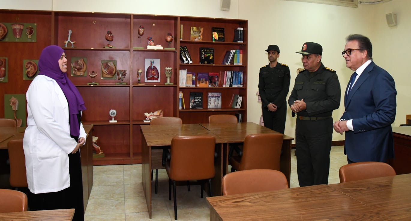 وتضمنت الزيارة جولة تفقدية لعدد من المنشآت التعليمية والمعامل التخصصية بالكلية والتى روعى فيها توافر كافة الإمكانيات وأحدث الأجهزة والمعدات ، كذلك تفقد مركز المحاكاة والتدريب الإكلينيكى الذى يتضمن أحدث محاكيات الواقع الإفتراضى لكلاً من قسطرة القلب والأوعية الدموية والمخ والأعصاب ، ومناظير الجهاز الهضمى والتنفسى ، والمناظير الجراحية ، والإيكو عن طريق المرىء ومهارات السونار المختلفة ، وسونار النساء والتوليد والتى تحقق أعلى درجات الواقعية فى التدريب العملى وتوفير بيئة تدريبية آمنة بما يسهم فى صقل مهارات الطلبة ومواكبة التطورات المتلاحقة فى المجالات الطبية المختلفة .