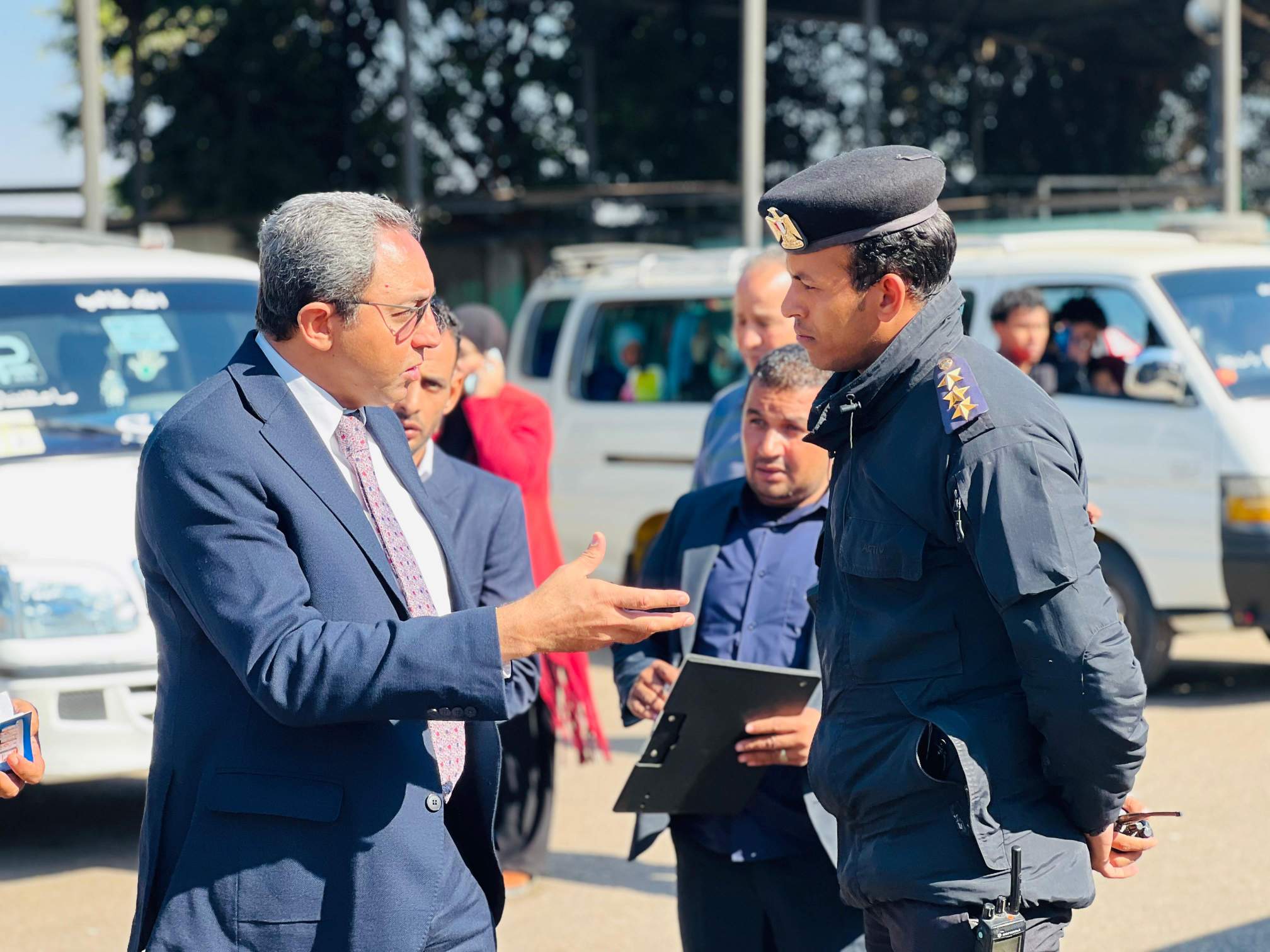 ورافق المحافظ خلال الجولة كل من: نور البريجي، مدير مشروع سيارات النقل الجماعي بالمحافظة، ومحمد حسن، مدير إدارة المراجعة الداخلية والحوكمة، وأحمد فيصل، مدير مشروع المواقف بمركز قنا، إلى جانب النقيب حسام العمدة ممثل إدارة المرور، وعدد من أفراد مباحث المرور، وذلك في إطار التنسيق الكامل بين الجهات المعنية لضبط منظومة العمل داخل المواقف.