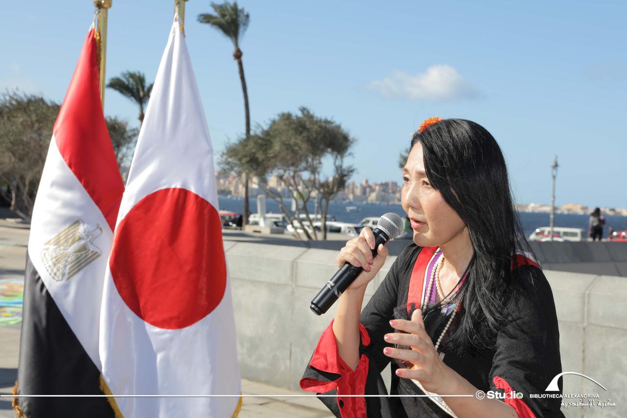 وألقى السيد تسوكاموتو ياسوهيرو، القائم بالأعمال بسفارة اليابان بالقاهرة، كلمته والذي بدأ حديثه باللغة العربية معبراً عن سعادته بالمشاركة في الإسكندرية.