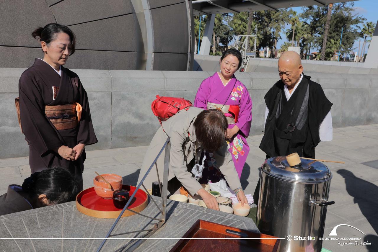 وشهدت الفعالية فقرة ثقافية مميزة لـ "مراسم حفل الشاي الياباني"، حيث ألقى السيد ياسونوري هيساكا (Yasunori Hisaka)، الكاهن بمدرسة "رينزاي زين" البوذية بكيوتو، كلمة عبر فيها عن سعادته البالغة بزيارة مدينة الإسكندرية الجميلة والاستمتاع بنسمات البحر المتوسط.