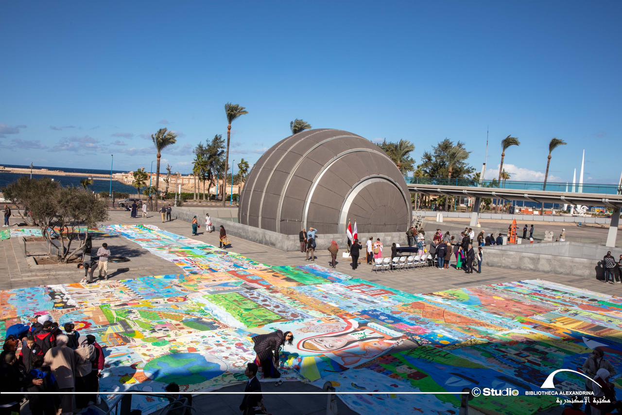 استضافت مكتبة الإسكندرية صباح اليوم، احتفالية كبرى للكشف عن "أكبر لوحة مرسومة في العالم" بالساحة الخارجية للمكتبة، والتي شارك في إبداعها طلاب المدارس المصرية اليابانية (EJS) بالتعاون مع أطفال من دولة اليابان، وذلك بتنظيم مشترك بين جمعية "Earth Identity Project" اليابانية ومكتبة الإسكندرية، وبالتنسيق مع وزارة التربية والتعليم وسفارة اليابان بالقاهرة، في حدث يجسد أسمى معاني التعاون الثقافي والتربوي بين البلدين.