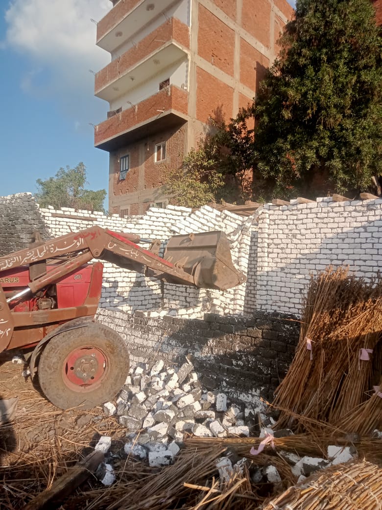 وفي مركز فاقوس وتحت إشراف المحاسب محمد الاباصيري رئيس المركز تم ازالة منزل سكني دور أرضي مسلح بعزبة نادي الصيد – بالعزازي على مساحة ١١٤ مترًا، إزالة كلية باسم المخالف (م.م).