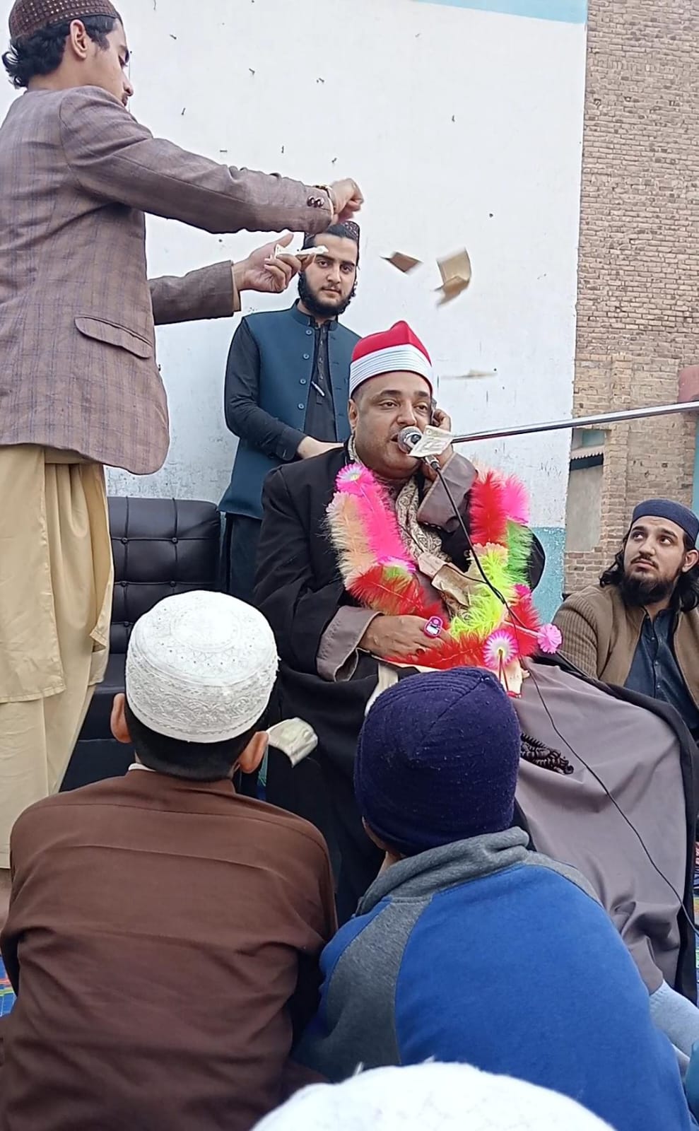 «فوجئت بحدوث ما لم أتوقعه، ولم أفق مما حدث إلا بعد انتهائي من التلاوة، حيث كان جلّ اهتمامي وتركيزي مع التلاوة وقتها. ورغم أنني لست معنيًا بتغيير ثقافات الشعب الباكستاني في التفاعل مع قارئ القرآن الكريم بهذه الطريقة، فإنني أرفض بشدة هذا الفعل، الذي يكمن في رمي الأموال على القارئ أثناء تلاوته».