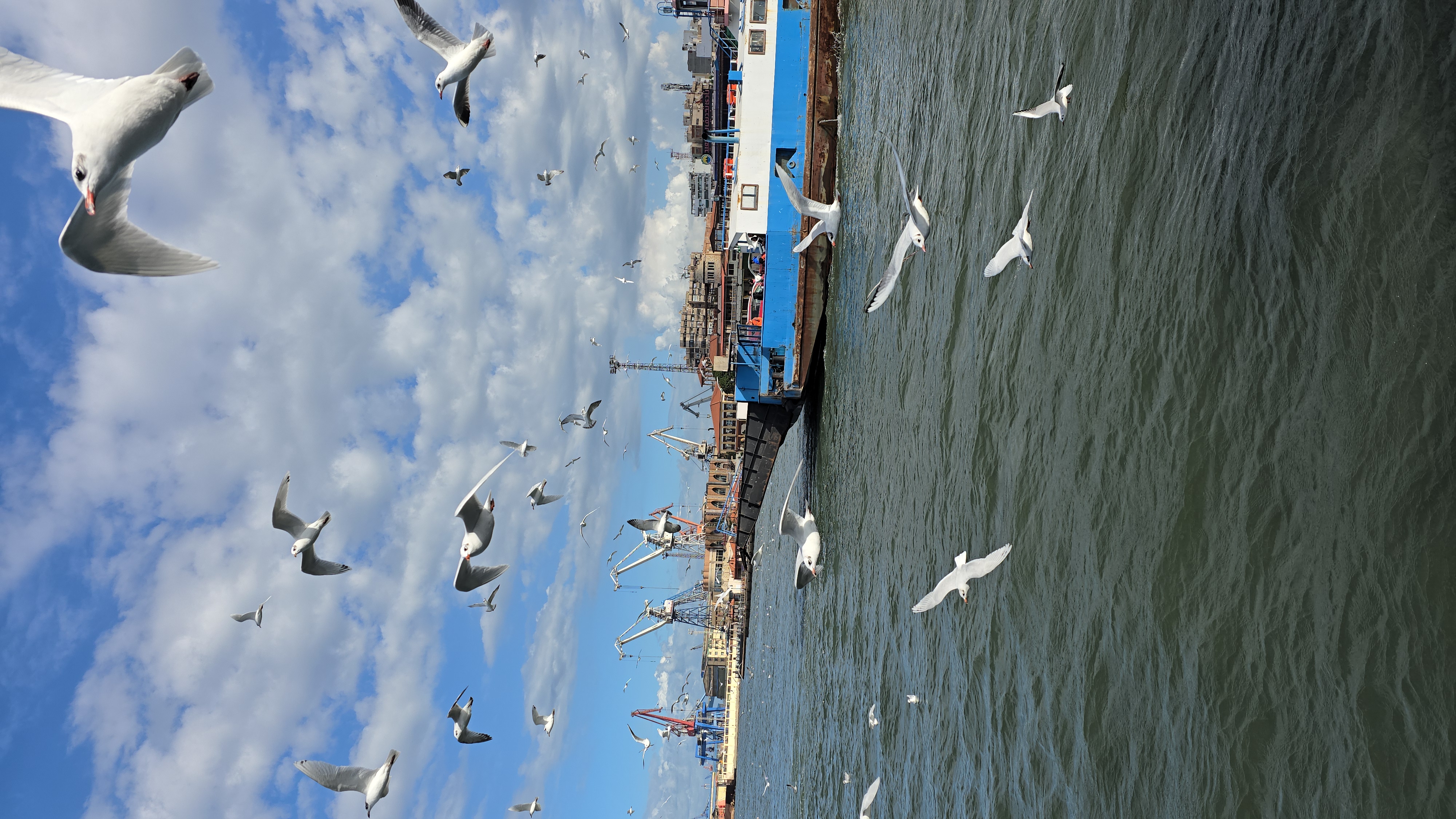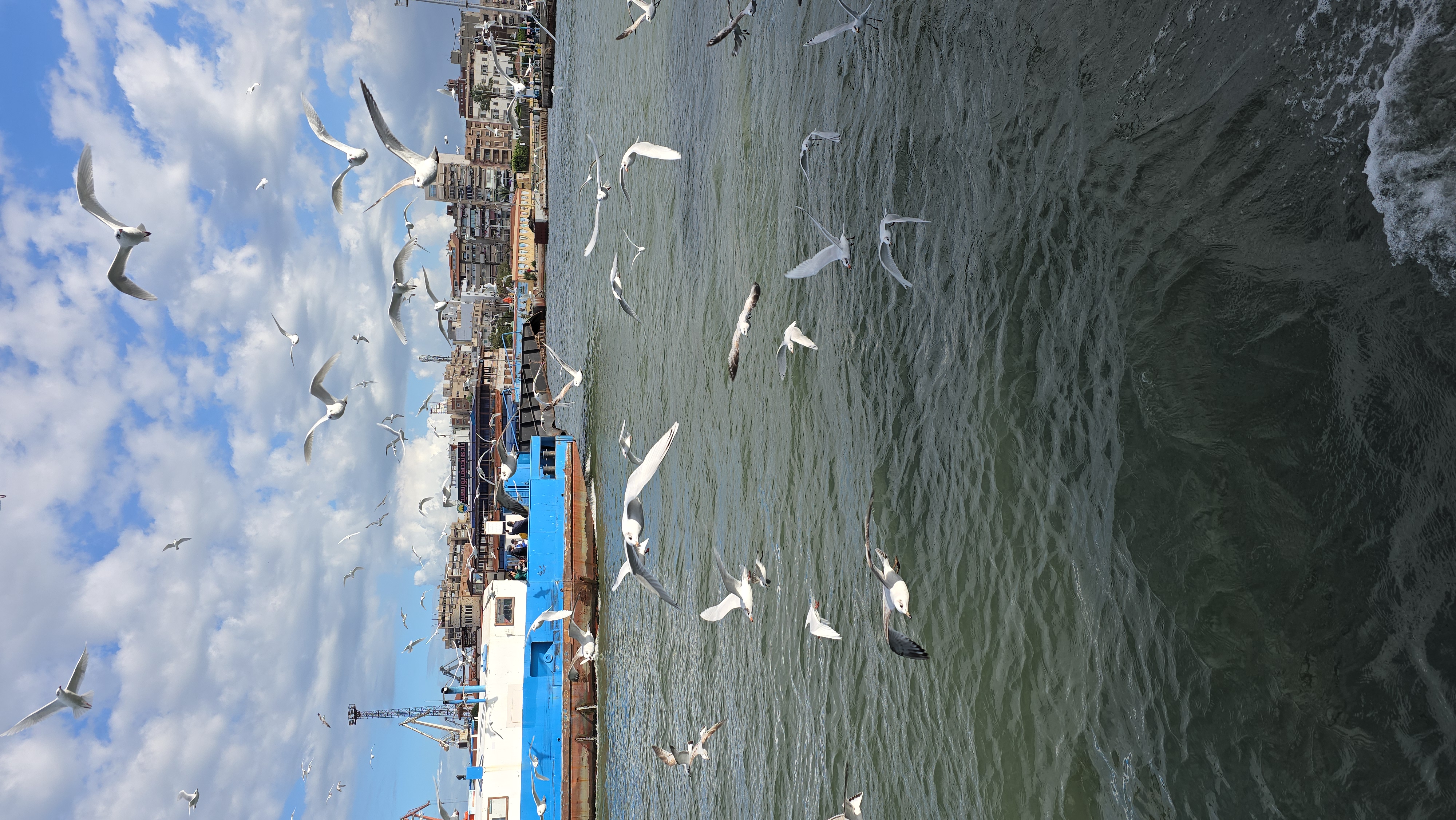 طيور النورس تداعب الأطفال و الزوار مستقلي معديات القناة