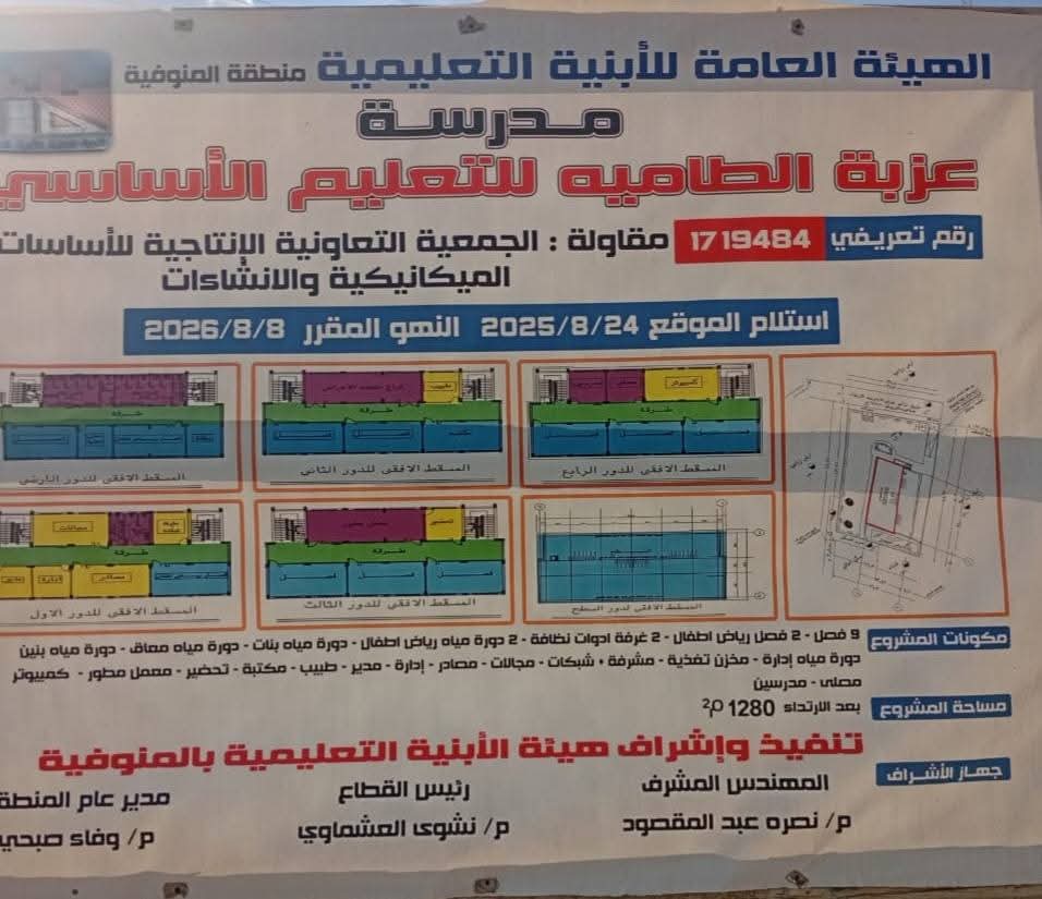 وفي إطار ذلك تفقد محمد الزرقاني رئيس مركز ومدينة الشهداء اليوم يرافقه محمد الشيخ رئيس الوحدة القروية بدنشواي الأعمال الإنشائية بمدرسة عزبة الطامية للتعليم الأساسي.