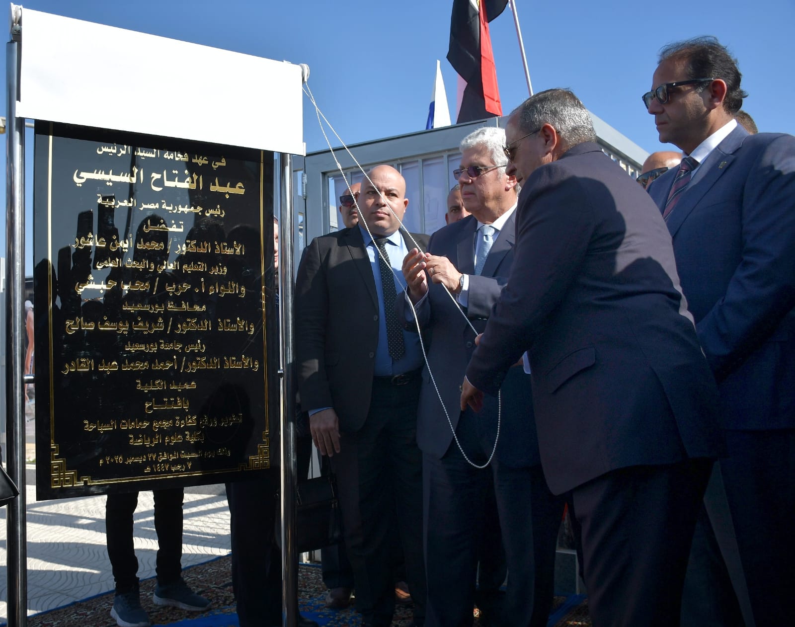 و خلال زيارته لمحافظة بورسعيد افتتح الأستاذ الدكتور أيمن عاشور، وزير التعليم العالي والبحث العلمي، واللواء أركان حرب محب حبشي، محافظ بورسعيد، والدكتور شريف صالح رئيس جامعة بورسعيد حمام السباحة الجديد بكلية التربية الرياضية بجامعة بورسعيد، بحضور عدد من قيادات الوزارة والمحافظة والجامعة والعميد اسلام بهنساوي رئيس مدينة بورفؤاد