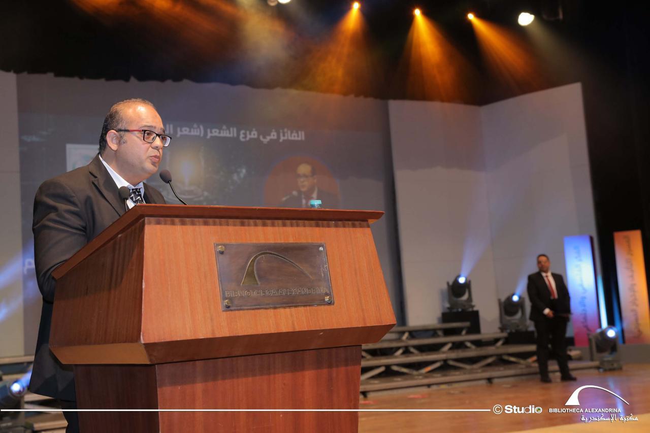 وتحدث الأستاذ الدكتور أحمد بلبولة، رئيس لجنة تحكيم فرع الشعر، مؤكدًا أن الجائزة تعزز الهوية المصرية، ومعلنًا فوز الشاعر عبد الرحمن مقلد بالمركز الأول عن ديوانه "رأى وتكلم"، والشاعر حاتم الأطير بالمركز الثاني.