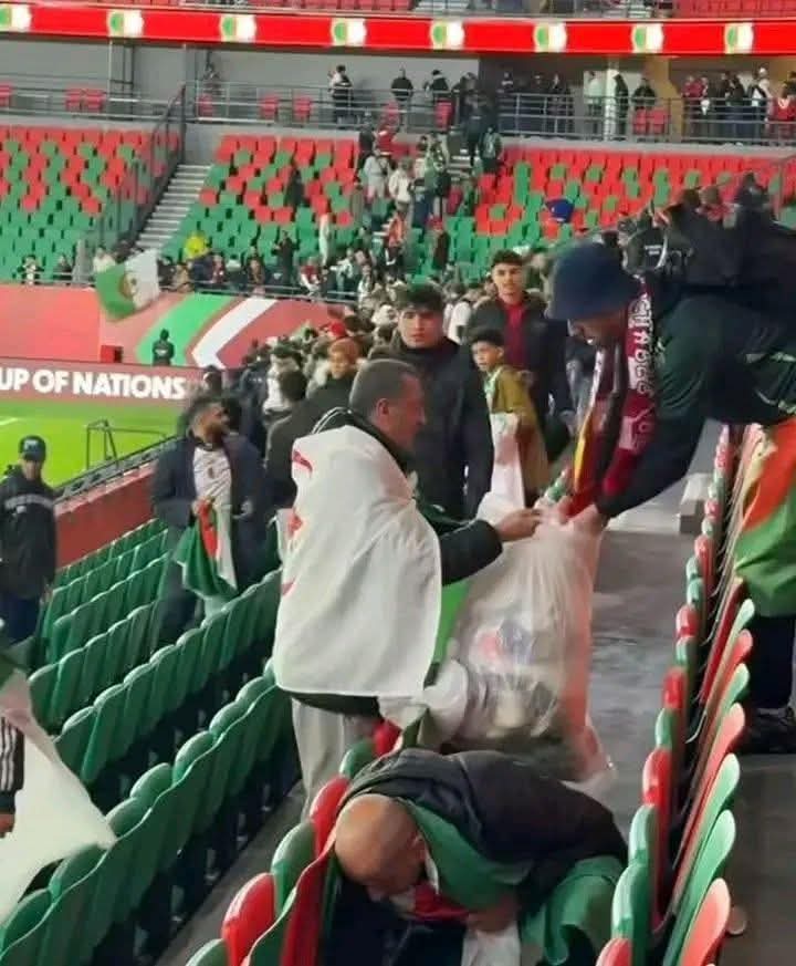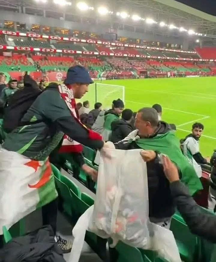 وعقب صافرة النهاية، حرصت الجماهير الجزائرية على جمع المخلفات وتنظيف المدرجات قبل مغادرة الملعب، في مشهد لقي تفاعلًا إيجابيًا كبيرًا من الحاضرين ورواد مواقع التواصل الاجتماعي، مؤكدين أن هذه التصرفات تظهر الصورة الحقيقية للجمهور الجزائري داخل وخارج الملاعب.