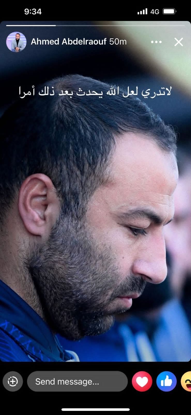 ونشر عبد الرؤوف صورة له عبر خاصية الاستوري وكتب :" لا تدري لعل الله يحدث بعد ذلك امراً ".