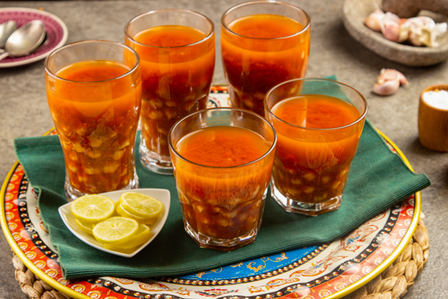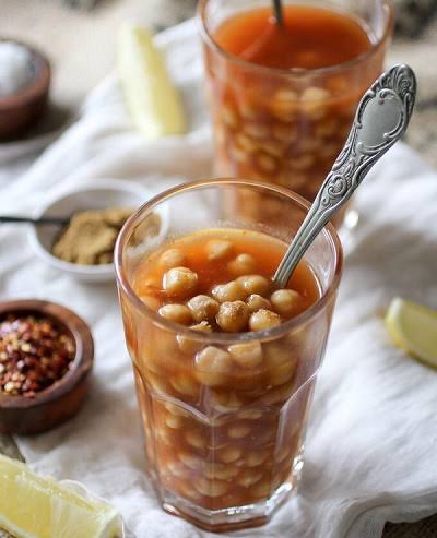 3- يُقدم حمص الشام ساخنًا في أكواب، ويمكنك إضافة عصير الليمون لإضفاء نكهة منعشة.
