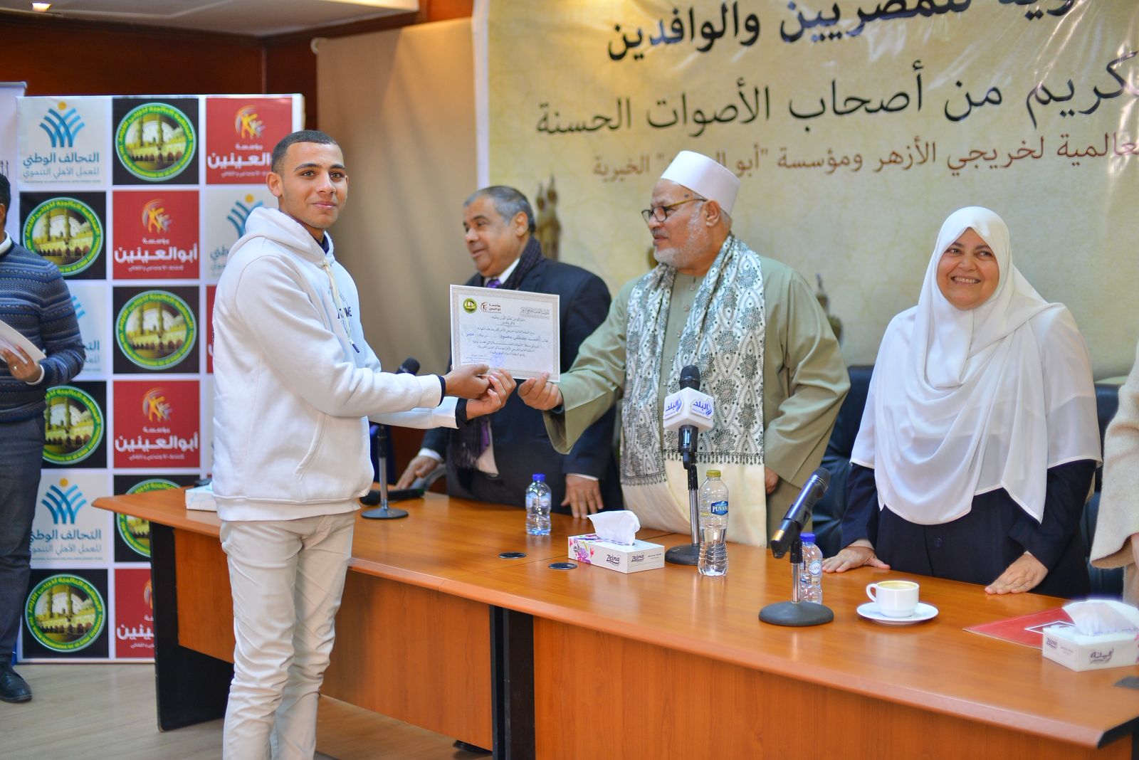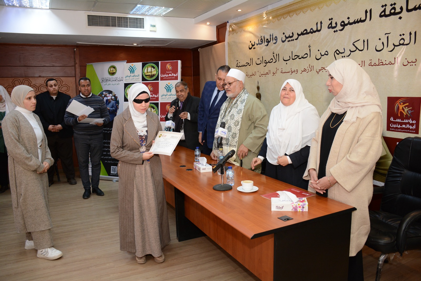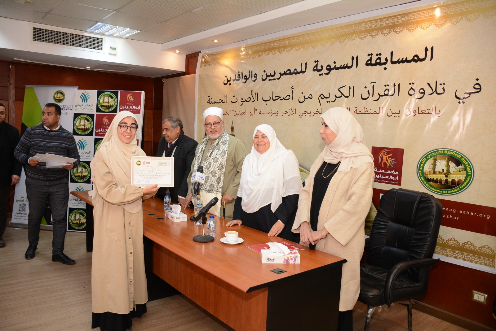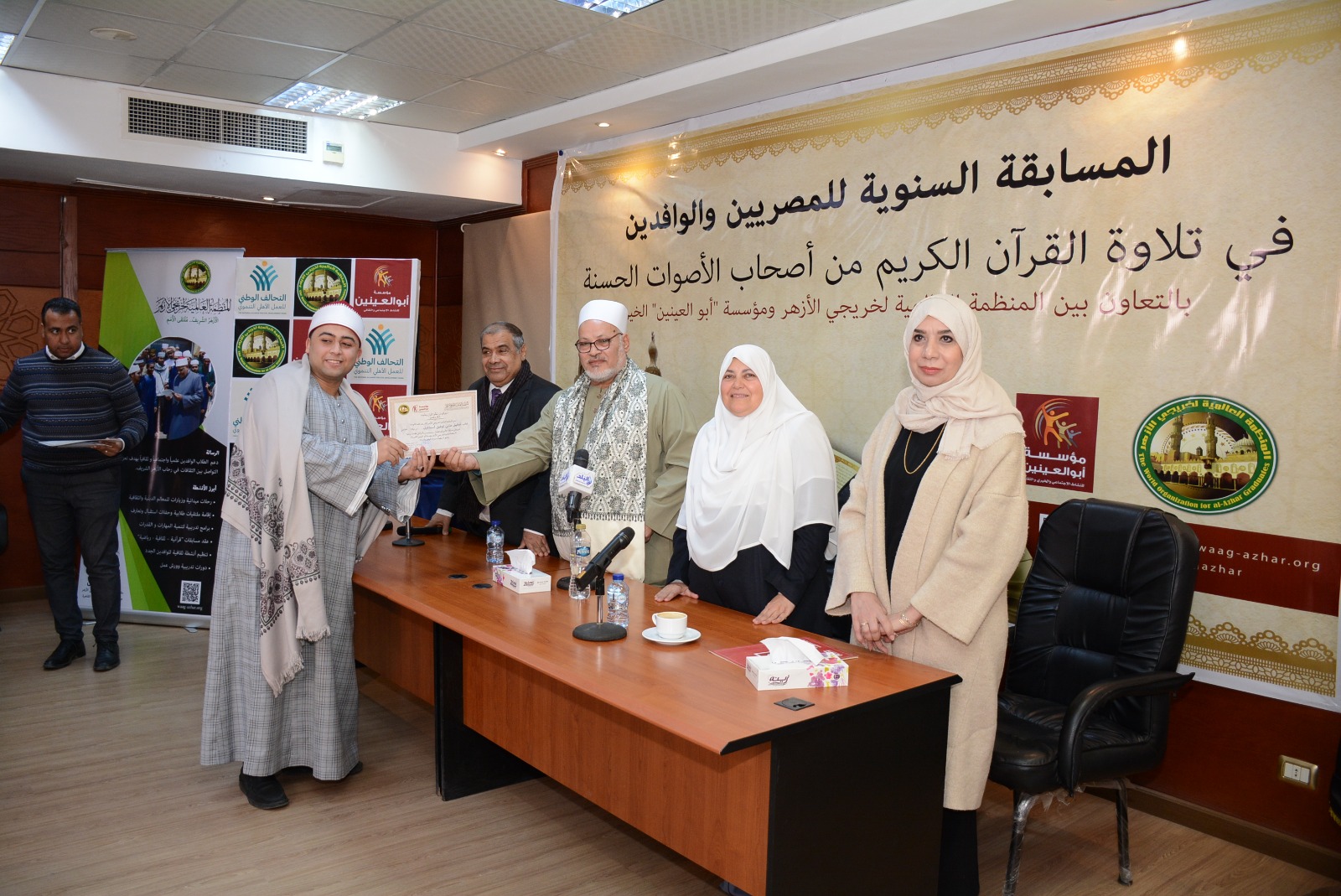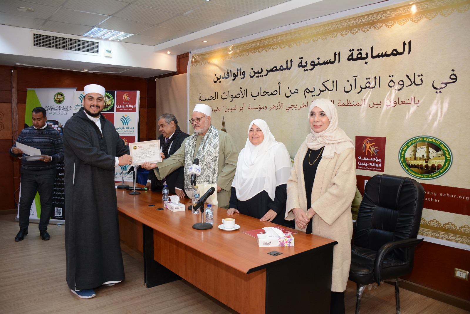أقامت المنظمة العالمية لخريجي الأزهر، بالتعاون مع مؤسسة أبوالعينين الخيرية، اليوم الاثنين، حفل تكريم الفائزين في المسابقة السنوية لتلاوة القرآن الكريم، من أصحاب الأصوات الحسنة، بحضور اللواء وائل بخيت، نائب رئيس مجلس إدارة المنظمة، والتي شارك فيها متسابقون من المصريين والوافدين، في إطار دعم حفظة القرآن، وتشجيع جمال الأداء، مع الالتزام بأحكام التلاوة.